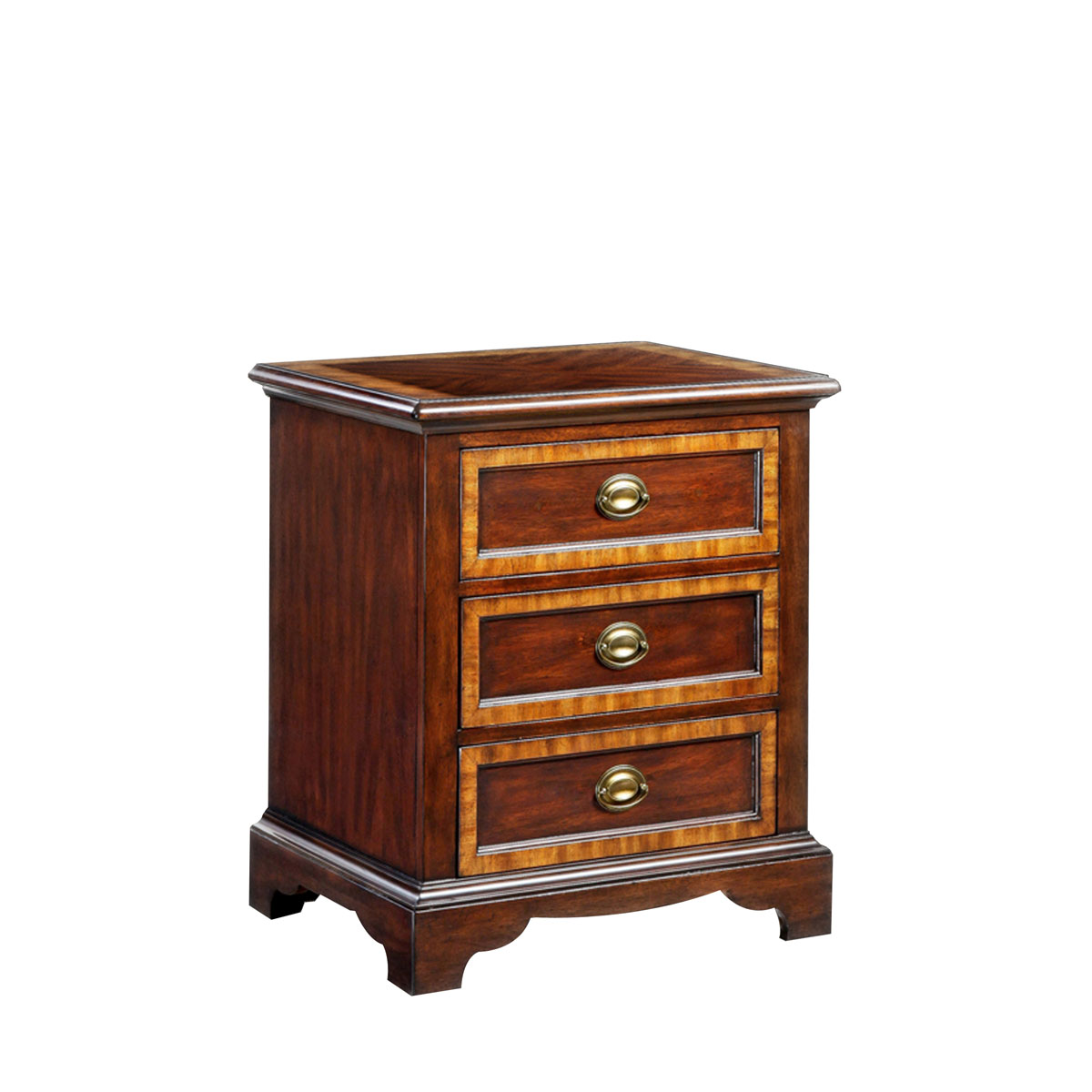 * 以18世纪英吉利 ——“日不落帝国”为设计主题,把东西方的多种艺术元素结合在一起。如精致的木皮贴面展现了高档木材的天然纹理,带出独特的立体感,厚实稳重的造型饰以仿古的涂装,展现出经久不衰的迷人魅力;配上古铜色的椭圆形拉手,是经典系列英吉利经典英式床头柜的特色。