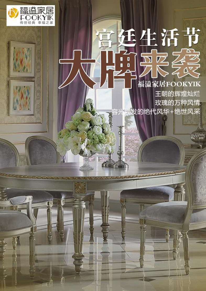 福溢家居FOOKYIK通过法式悟空体育官网、英式悟空体育官网、意大利豪华悟空体育官网,打造现代宫廷生活,突出奢华、舒适、艺术、浪漫、精致、典雅、名贵、隽永等关键词,它不仅仅是沿袭宫廷里的奢华元素,同时考虑了国人的坐卧使用要求、运用现代科技,塑造极致的舒适体验,最终呈现更值得拥有的现代宫廷生活。