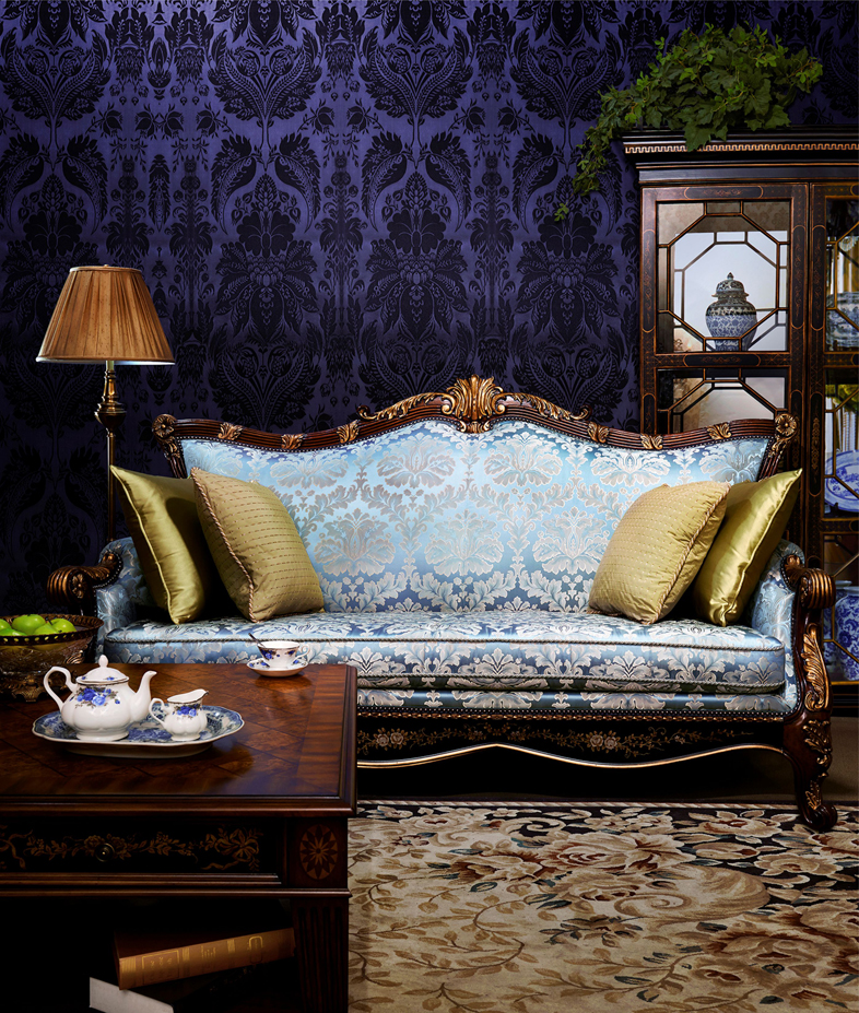 高山流水的风景手绘,相谈品鉴东方水墨画的诗意情长;搭配闪耀在18世纪英国上流社会的复古布艺和臻致雕刻,典雅高贵与时尚流行交织融合,载满人们憧憬美好生活的愿景。