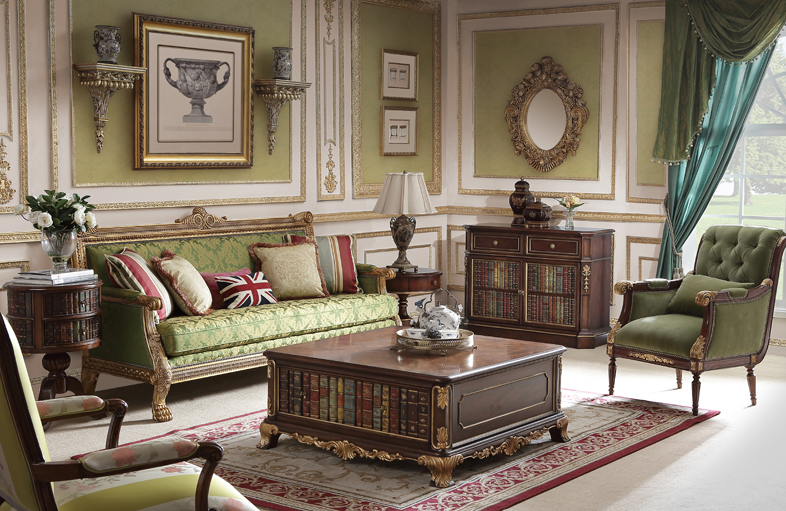 还原英国近郊温莎城堡房间内的珍稀古董悟空体育官网,重现摩登18世纪的奢华皇室生活。以象征希望、和平的绿色为主基调,书本彩绘饰以仿古效果为豪门大宅增添了几许书卷情韵,描金的花朵、藤蔓雕刻,点缀出贵族生活的品位与真谛!