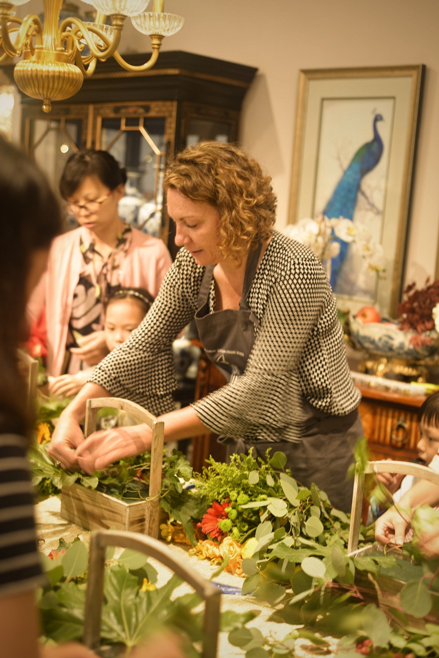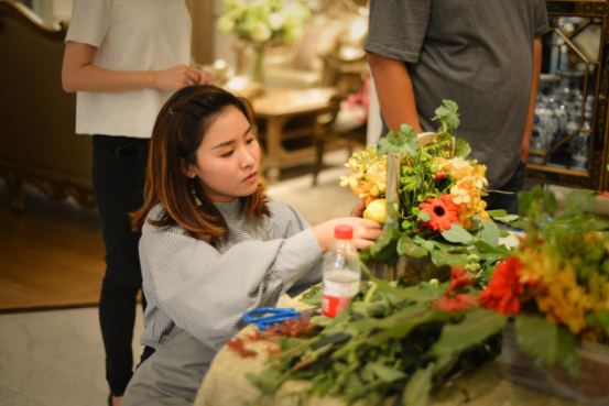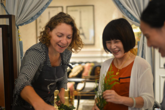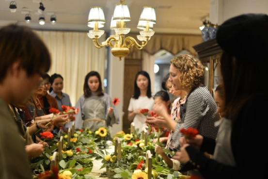 活动参与者在花艺师Carole Delavelle的指导下认真学习,在轻松惬意的插花过程中寻找生活的灵感,放下平日的繁忙,感受生命的觉醒与回归。