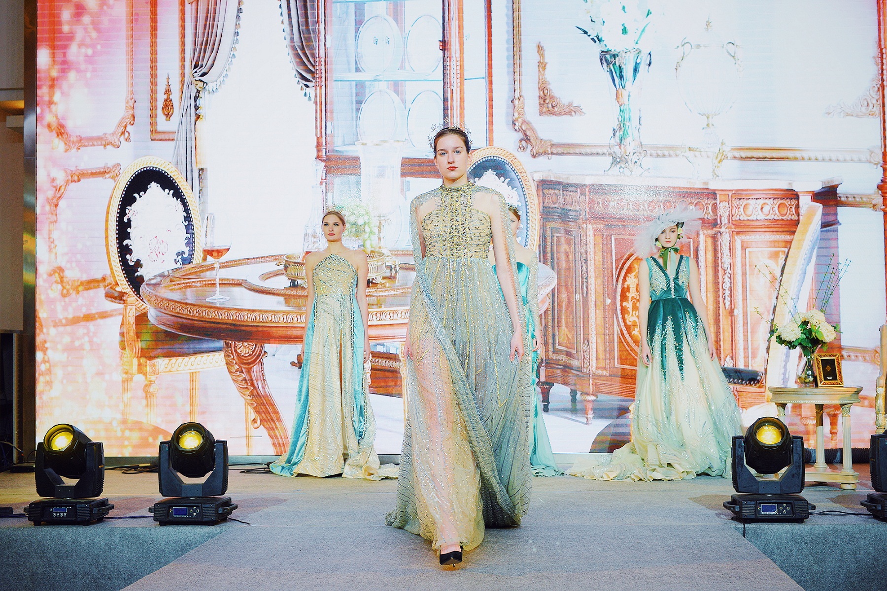 福溢家居的人居美学,从优雅绅士的英国风到浪漫唯美的法国风,从古典奢华意大利风到摩登精致的时尚风,将产品主题与故事结合,引导顾客一起创作出专属的幸福空间。这次,我们以别出心裁的走秀形式将不同风格一个个呈现在大家的面前。