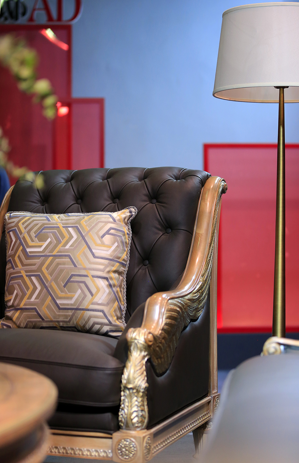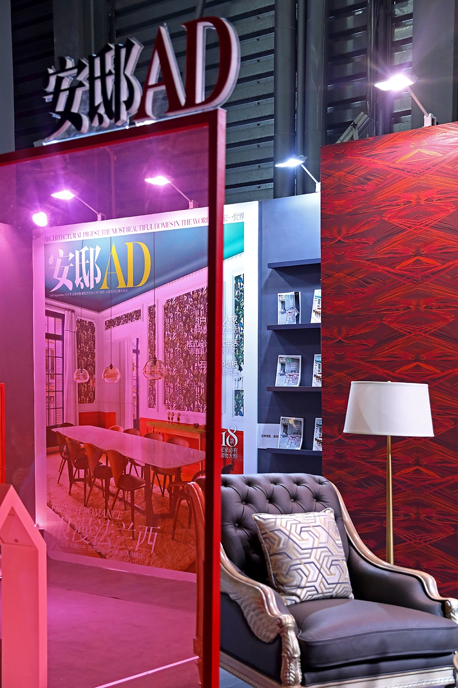 福溢家居的新古典主义摩登沙发与德国玛堡壁纸Zaha Hadid《Hommage永恒之光》系列的红色华丽线条铺陈,让古典与摩登在此交汇,变成一场设计无界的对话。