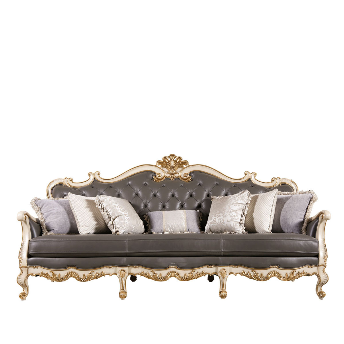 意大利维罗纳沙发根据意大利宫殿造型设计,线条优美,结构稳固,采用光泽温润的珠光皮材质,配上宝石钮扣的装饰,非常高贵典雅。灵动优美的山羊脚表现出力度与跳跃时的曲线美,带来维罗纳迷人气息。