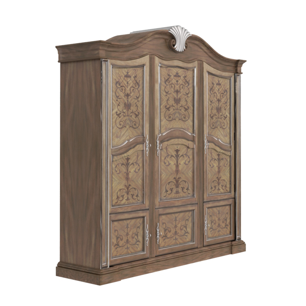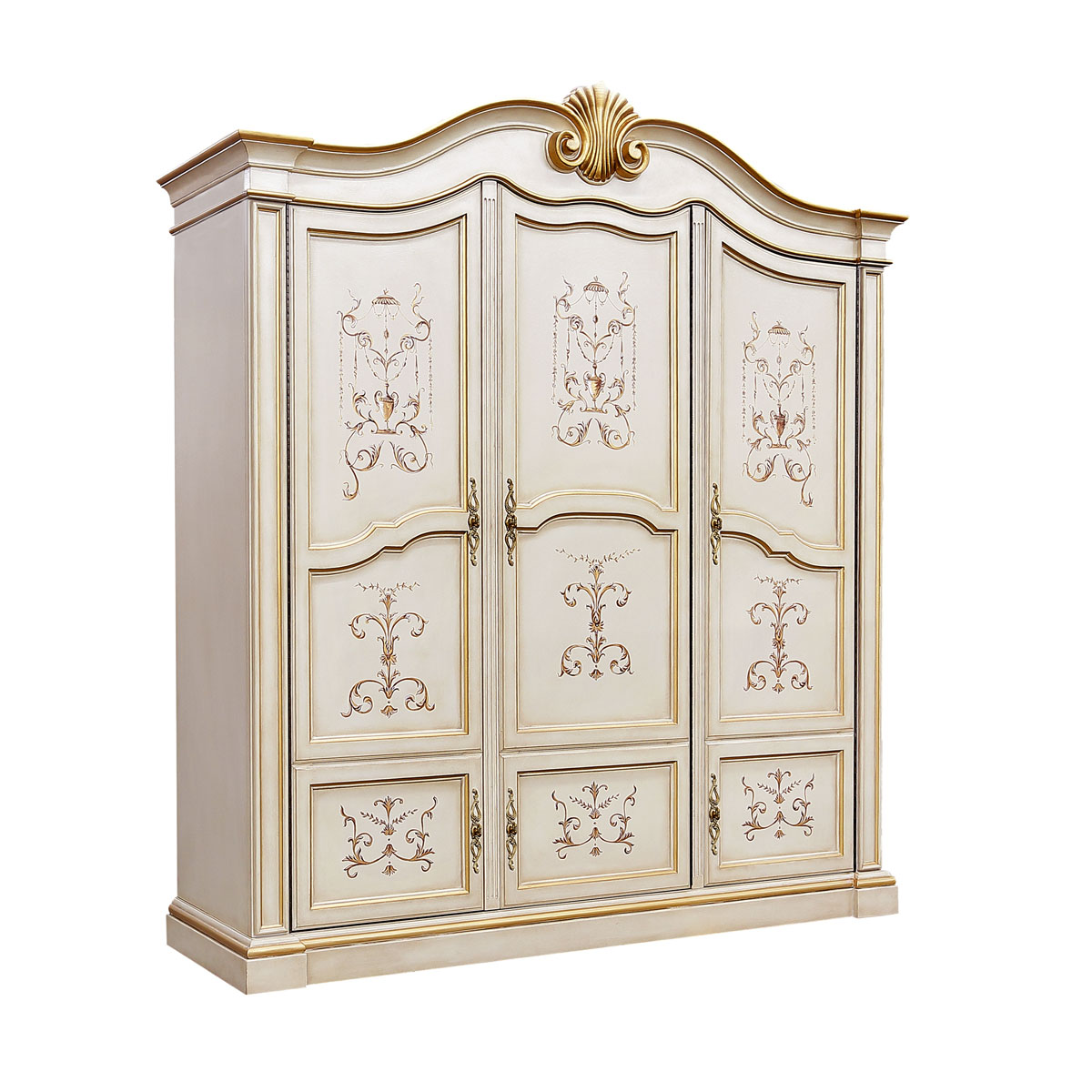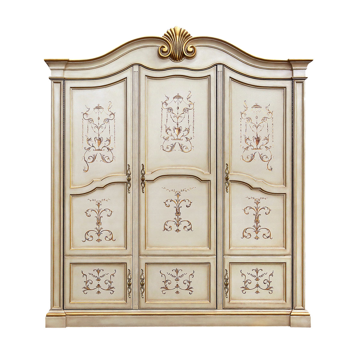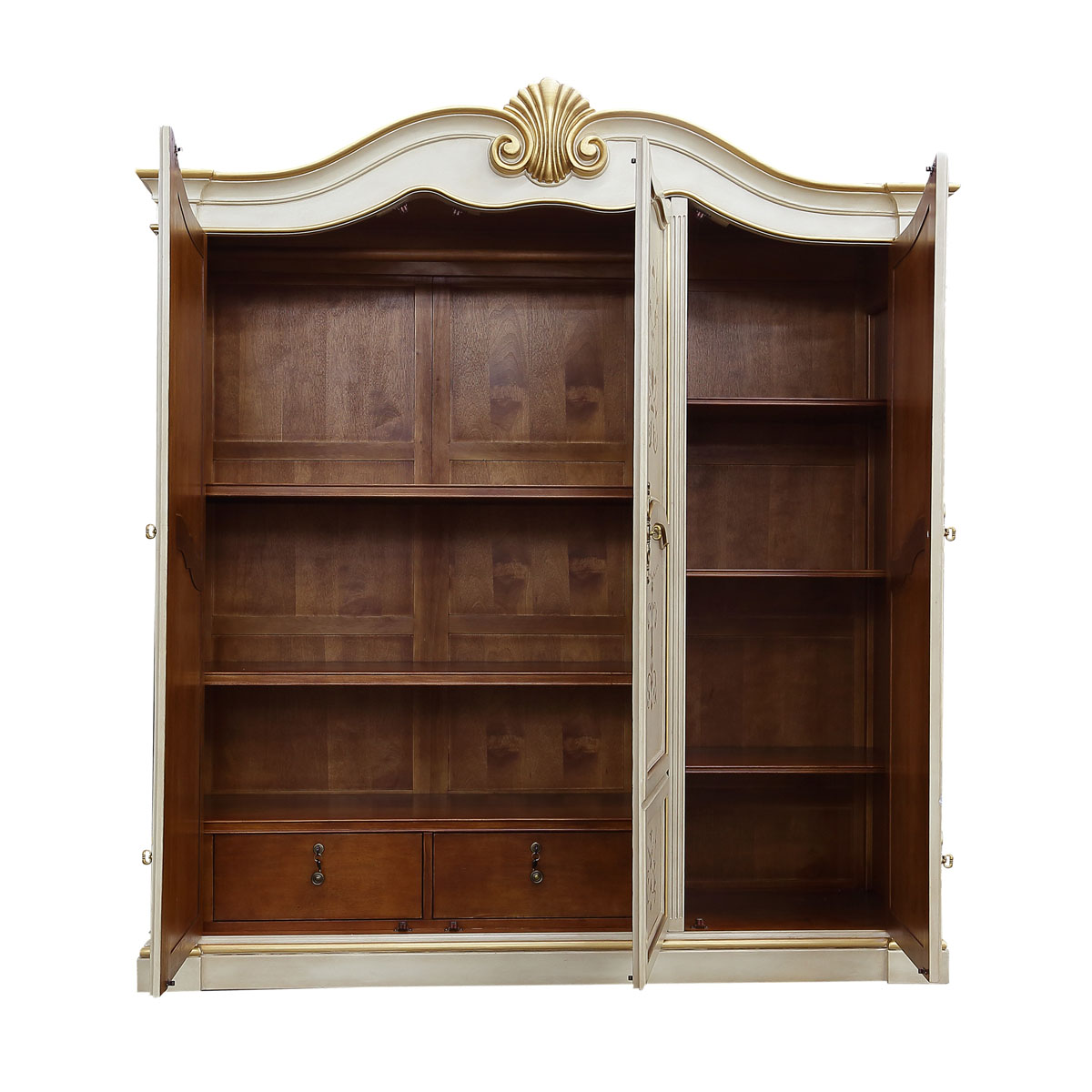 * 手工雕刻的工艺细节结实的连接技术18道以上的多步骤油漆工艺; * 上座门内各有一块可调层板和1根可拆装的挂衣棒; * 三个储物抽斗,底部采用硬木实木滑轨 * 下座门内各有一块可调层板