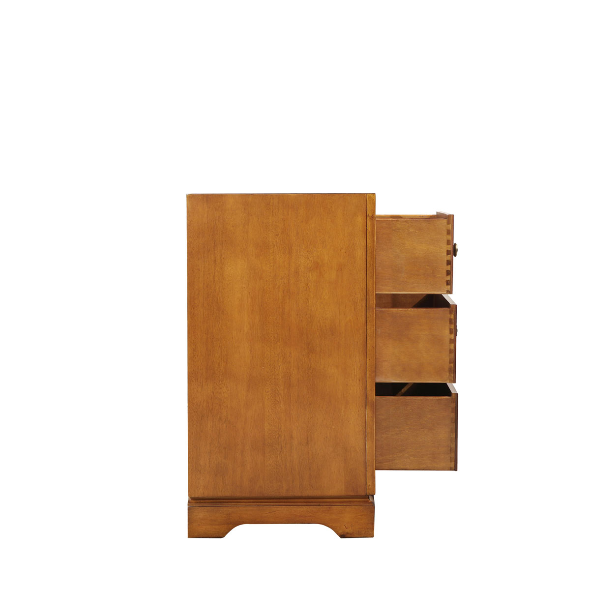 * 多种木皮拼接工艺; * 一个储物抽斗,底部采用硬木实木滑轨 * 脚底部装有可调整脚钉;