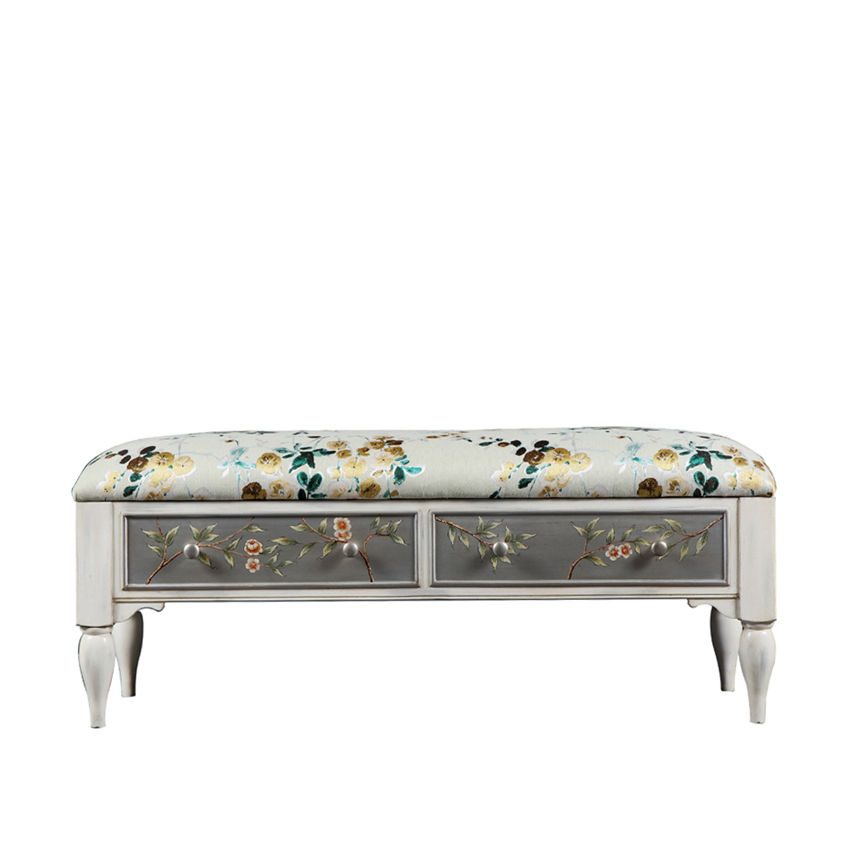 花叶,藤蔓伸展蔓延,灵鸟轻憩其上,典雅的银底手绘栩栩如生,将清新淡雅的田园风味融进家居装饰中,为家增添浓郁又鲜活的自然表情,两个抽屉设计,存取便利,美观又有实用功能。