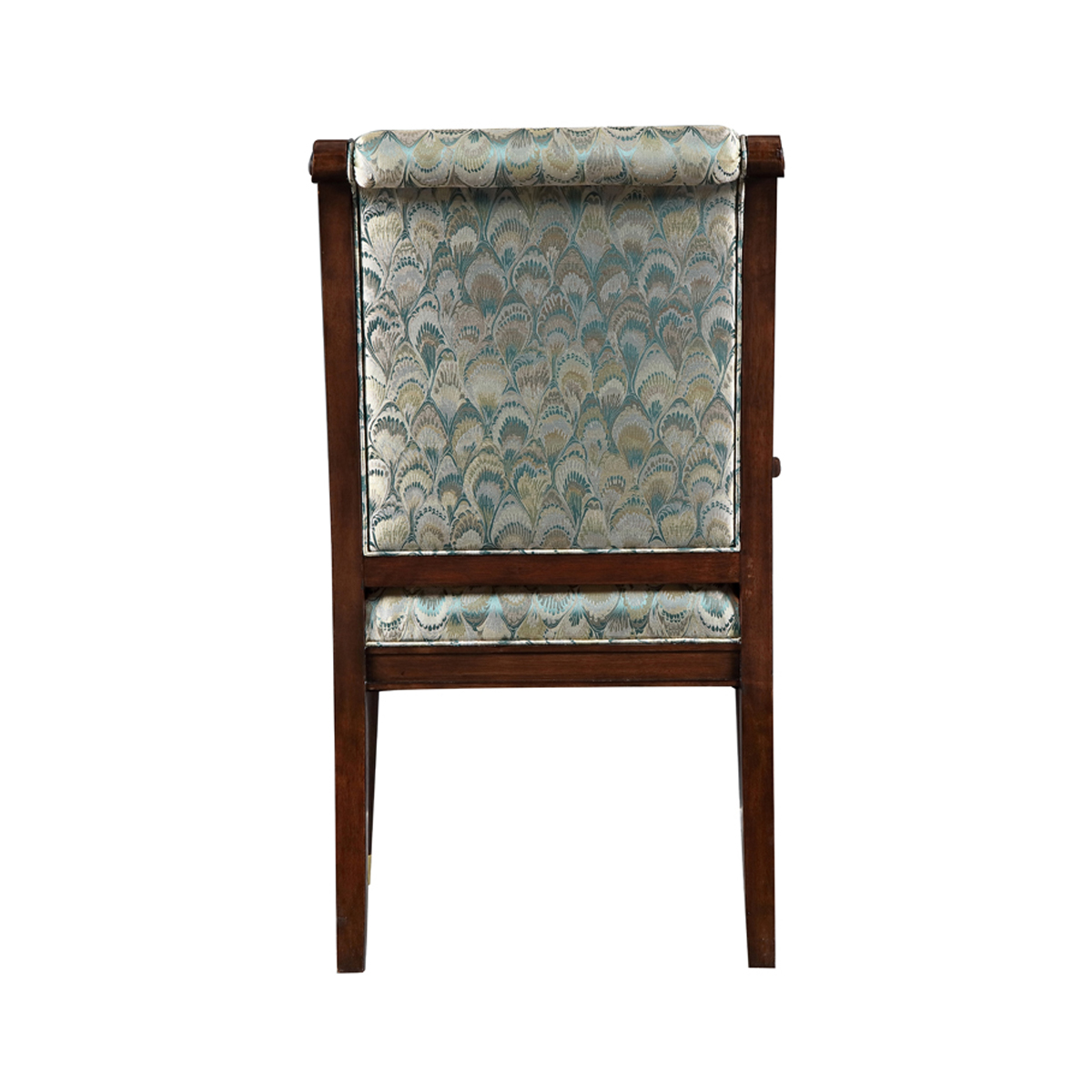 胡桃木色框架深浅明暗度的对比,更具有立体感,清晰的胡桃木纹理和孔雀翎印花布艺体现出大自然的感觉。