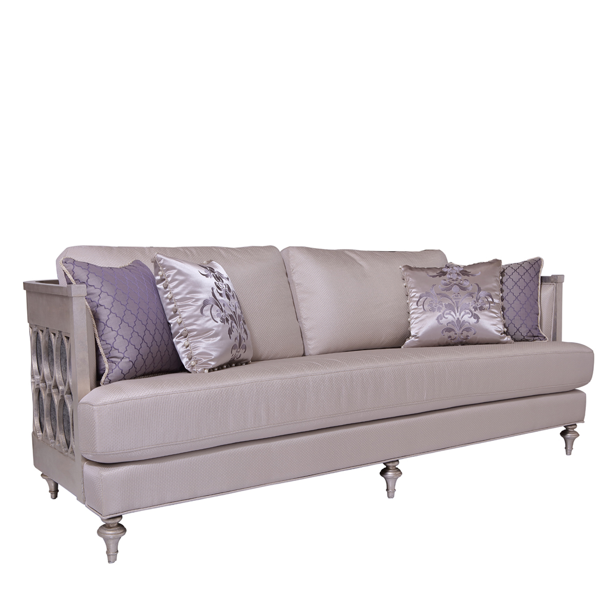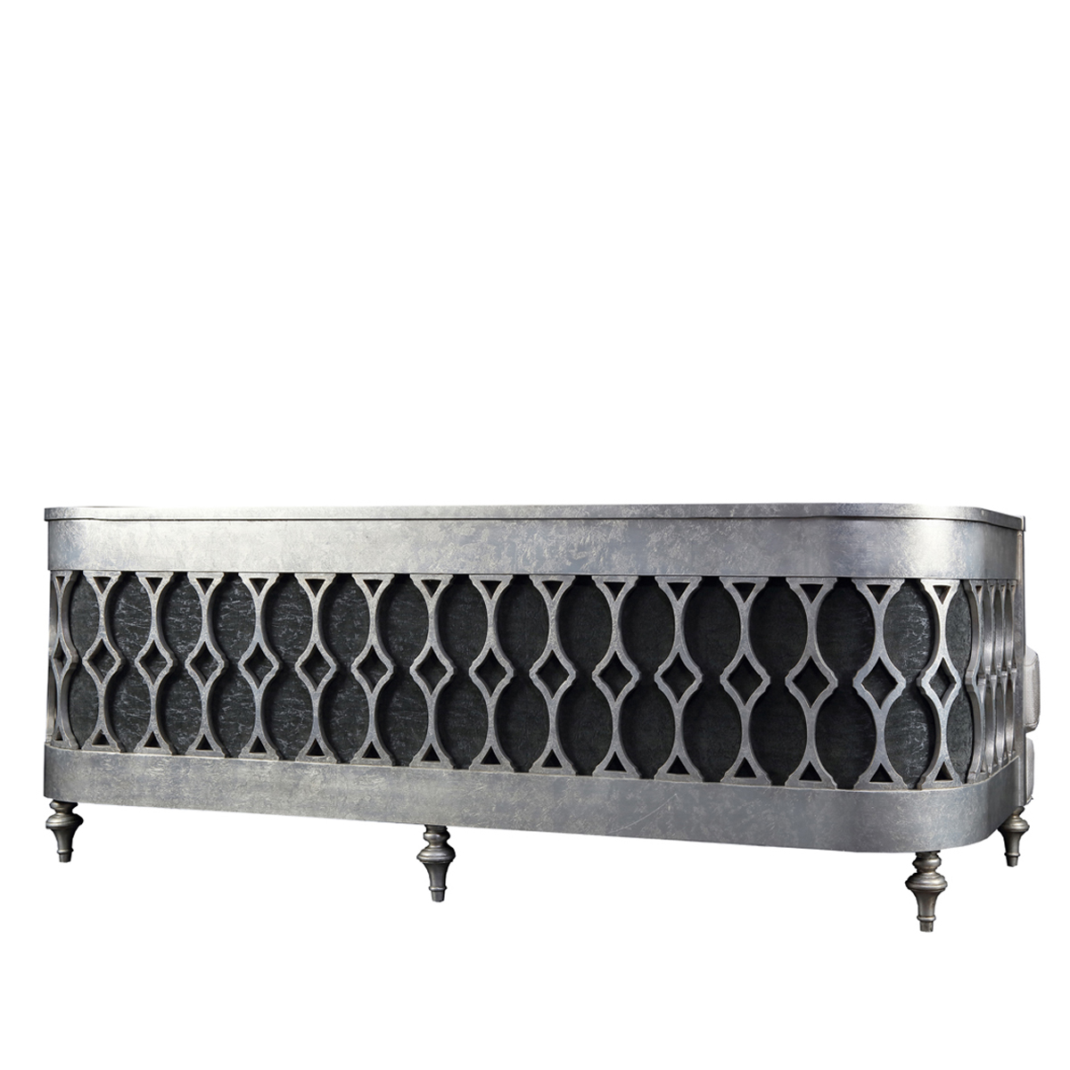 低靠背的沙发设计,为阳光留足了空间;仿古银涂装,从容之中难掩气质的流露。镂空工艺勾勒出轻盈修长的线条,在弧形流畅的沙发造型中演绎出变幻之美。