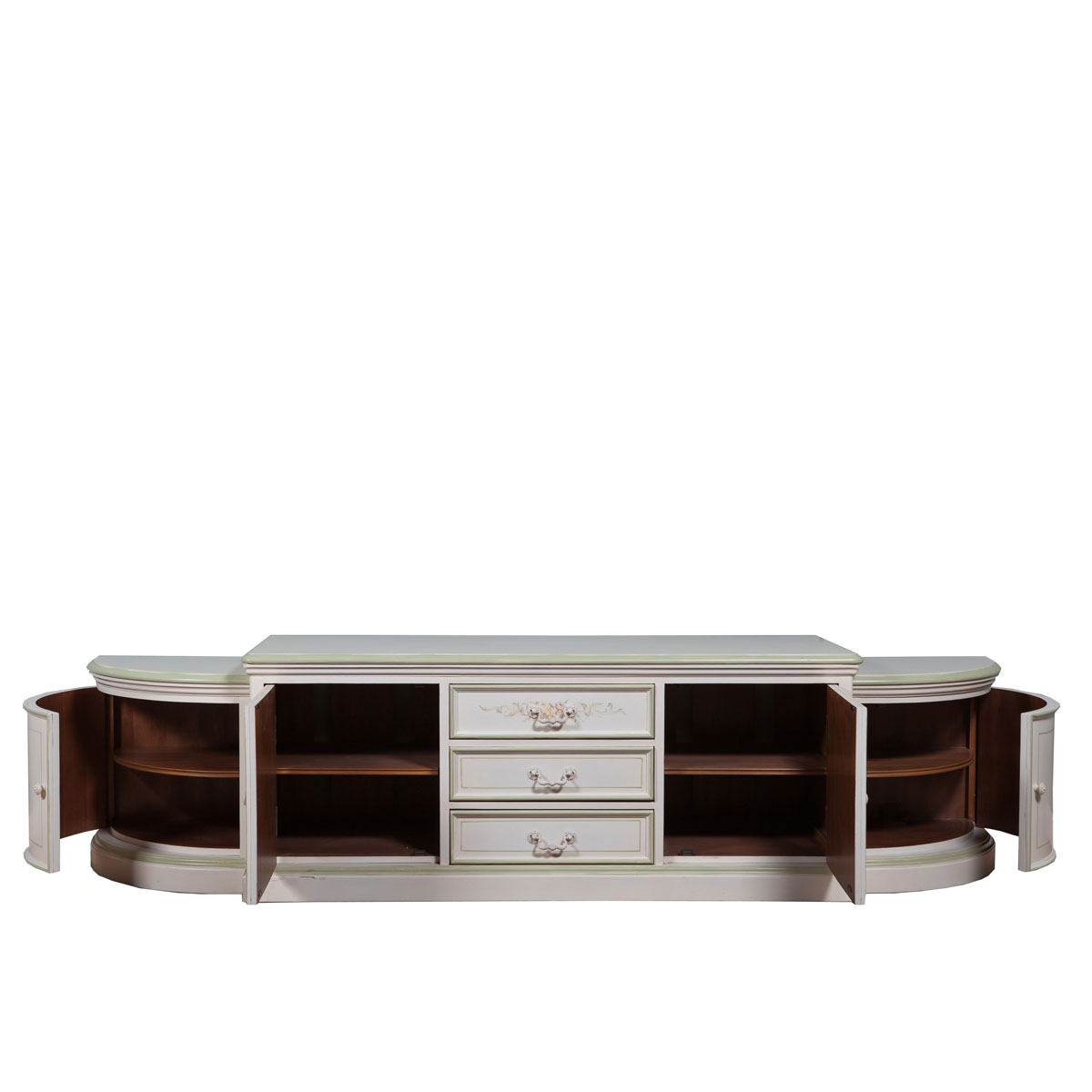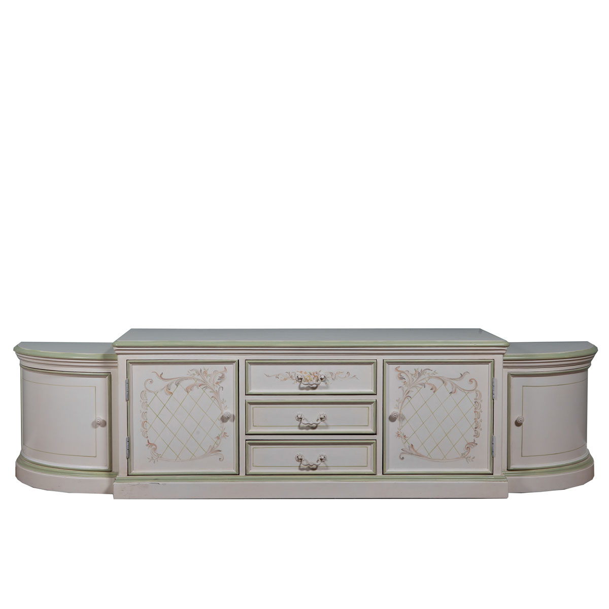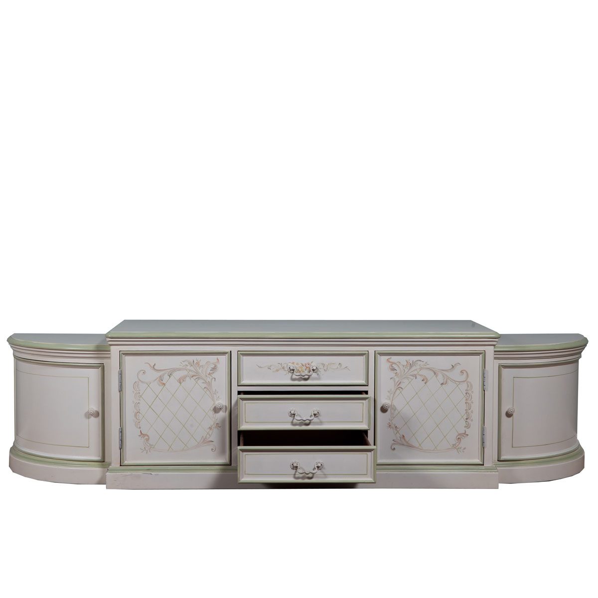 * 手工拼花更显艺术价值,左右合拼制成半月形状 * 门内各有一块可调层板 * 三个储物抽斗,底部采用硬木实木滑轨 * 脚底部装有可调整脚钉.