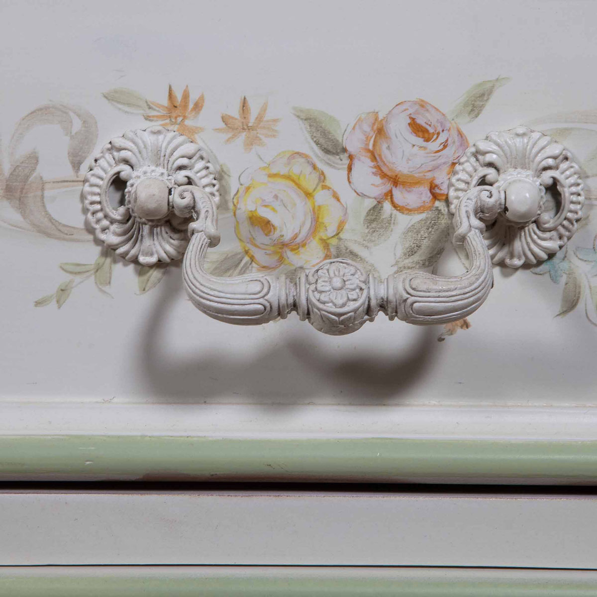 普罗旺斯的花海已折射在以花卉为主题的手工彩绘上,每一笔每一线都夹带着花朵里的芬芳,法国的古董白跳跃着清新的复古美,与精致的彩绘相得益章,曲直结合的新古典主义造型与花藤抽手配搭更显浪漫。