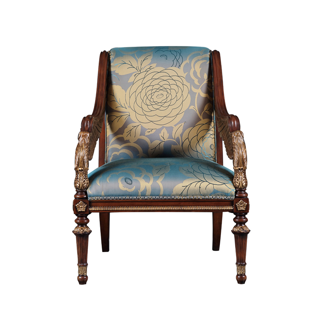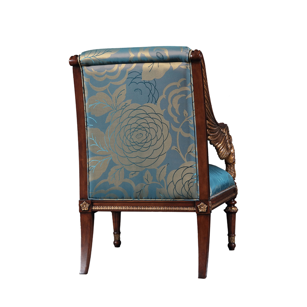 以现保存在法国"卢浮宫"的 “胜利女神像”为意念,并结合意大利强调帝权象征的帝国EMPIRE风格元素中翅膀造型,设计雕刻出胜利女神-Samothrace翅膀扶手,羽翼丰满的羽毛雕刻极为精巧经典,栩栩如生,复兴你的典雅情怀。