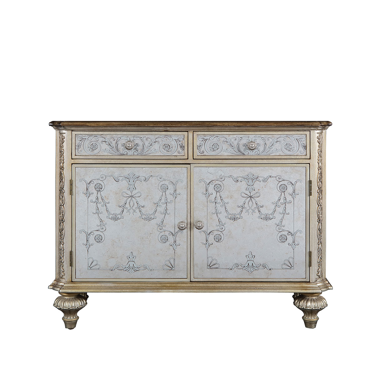 * 手工雕刻的工艺细节结实的连接技术18道以上的多步骤油漆工艺; * 2个储物抽斗,采用经典的硬木实木滑轨设计; * 门内有1块实木层板; * 底部装有可调脚钉;