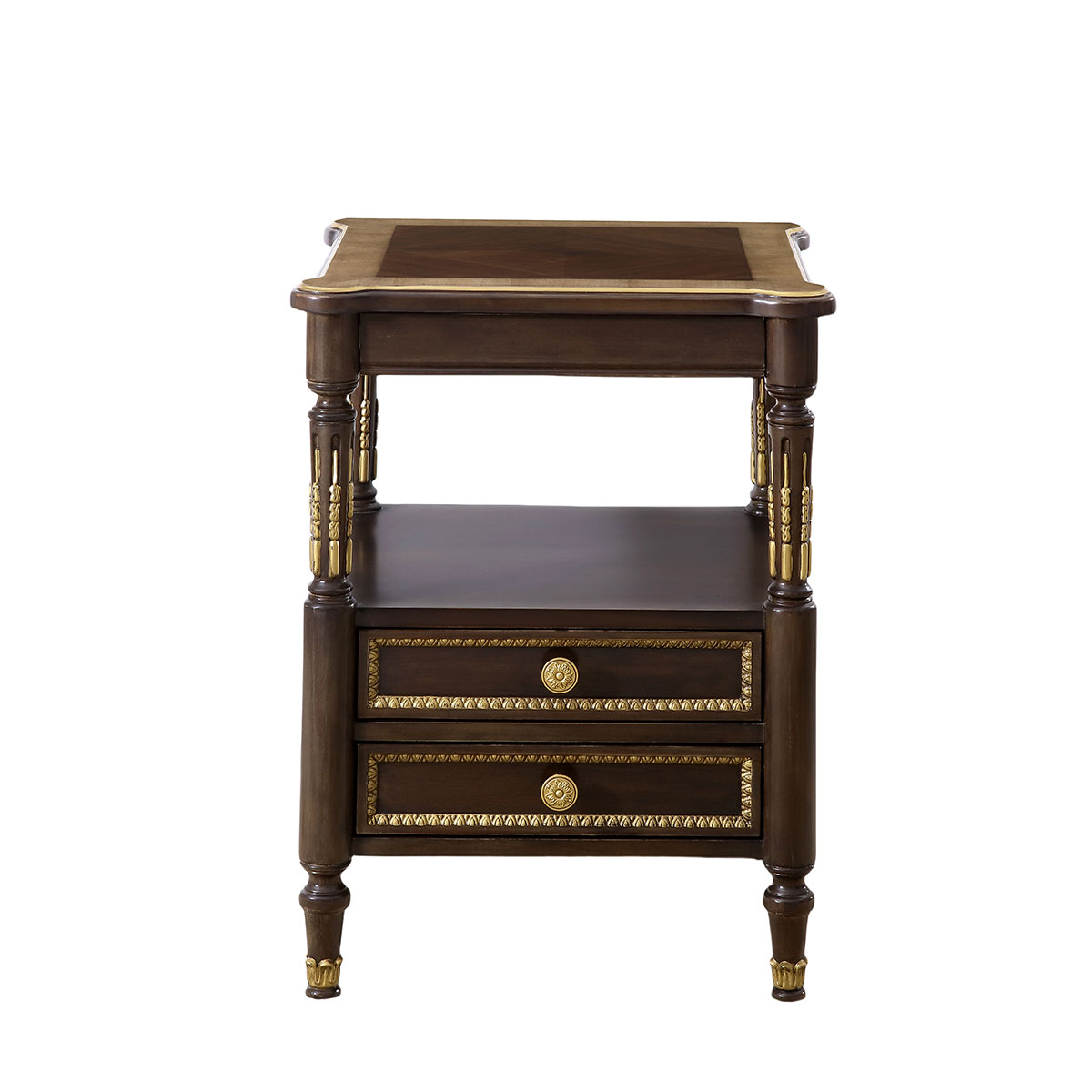 * 精细的雕刻工艺配上仿金箔与十八道油漆工艺; * 结实的连接技术; * 二个储物功能的抽斗; * 多种实木薄片拼接工艺;