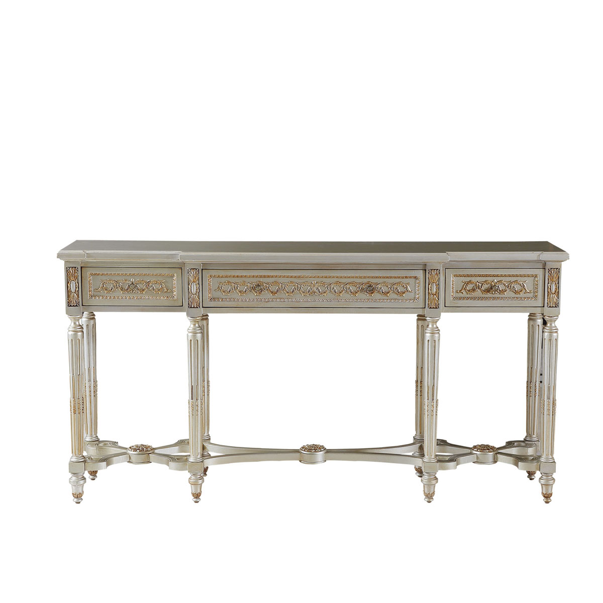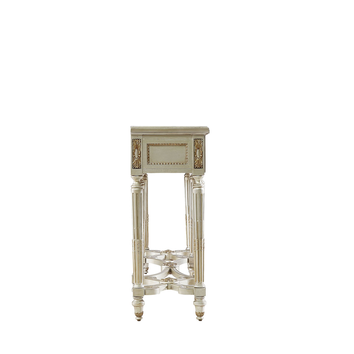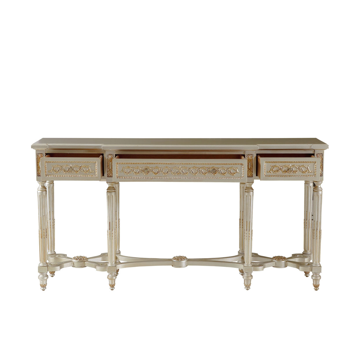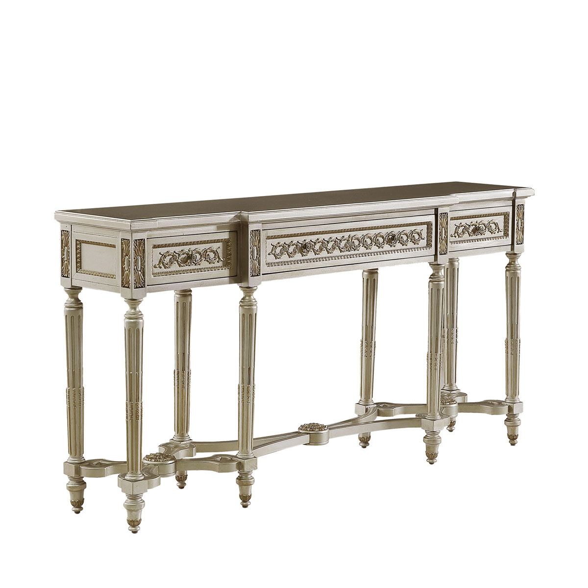 * 手工雕刻的工艺细节 * 结实的连接技术 * 三个储物抽斗,而在其底部采用经典硬木实木滑轨设计;可灵活拆装.