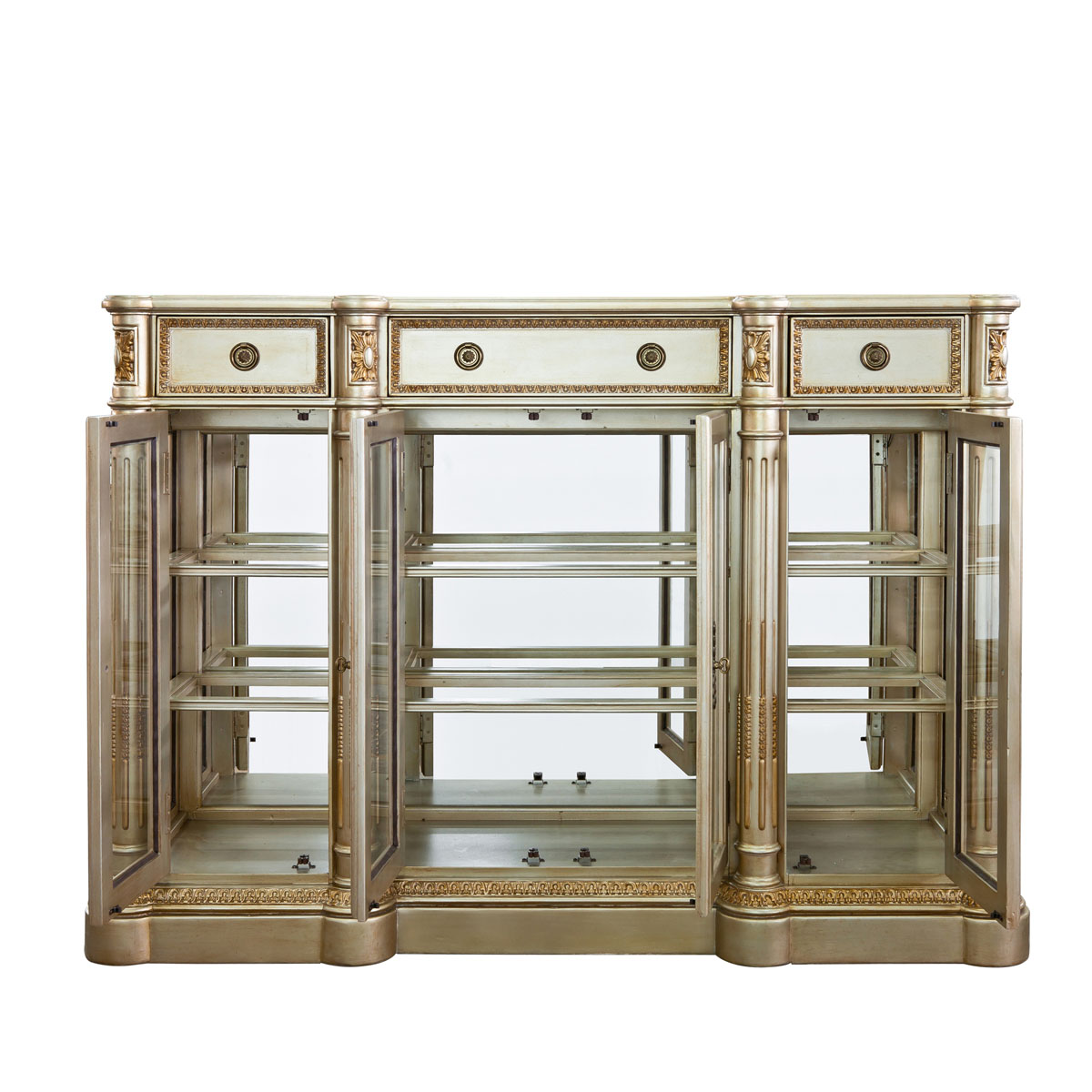 * 以法国路易十六时期的古董悟空体育官网为设计基础,采用同时期的建筑柱元素和耀眼奢华的网眼图案、金箔贴饰,使其充满了法式宫廷的优雅与华丽,充分诠释了18世纪法式悟空体育官网融合建筑与悟空体育官网设计的艺术特点。