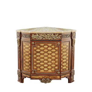 * 手工雕刻的工艺细节,结实的连接技术; * 整体为拆装设计; * 上座门内各有三块可调层板, * 下座左右两边四个储物抽斗,而在其底部采用经典硬木实木滑轨设计,中间门内各有一块可调层板; * 脚底部装有可调脚钉;