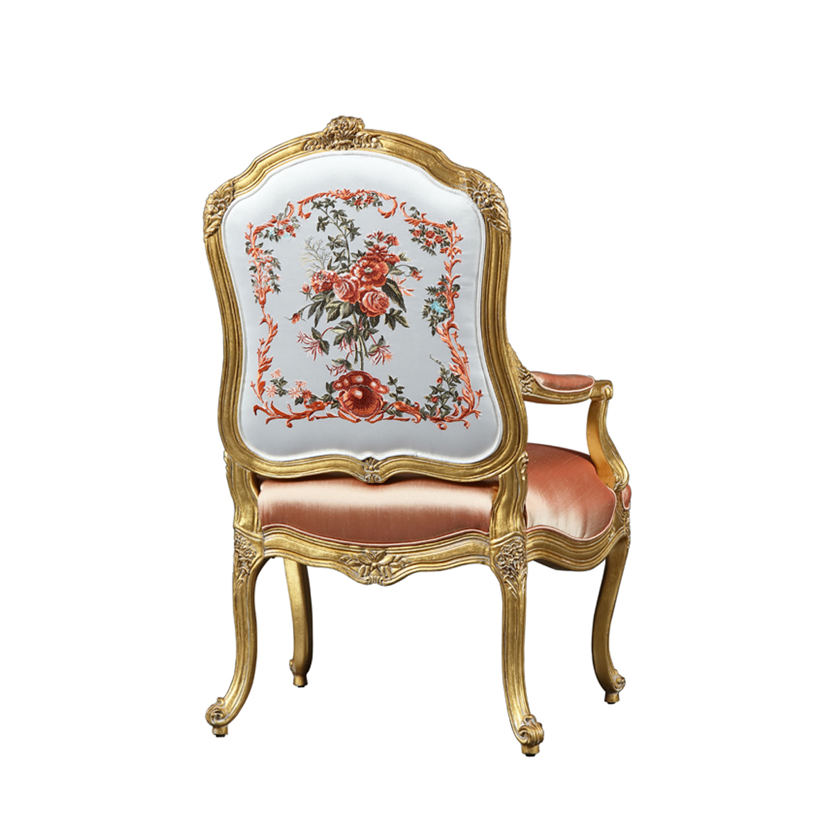 French Chanson法国香颂餐椅,温婉绵长的法式雅韵之风。古雅舒适的漆雕、经典的法式弯脚、爬满藤蔓的斗面,箭形麦式的椅背、玫瑰花印花布艺、洛可可艺术等等诠释法式的优雅。