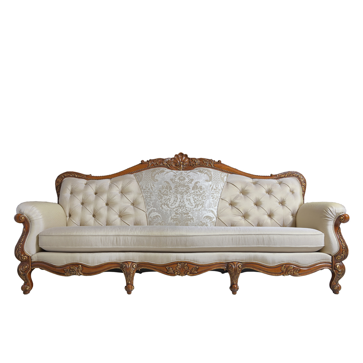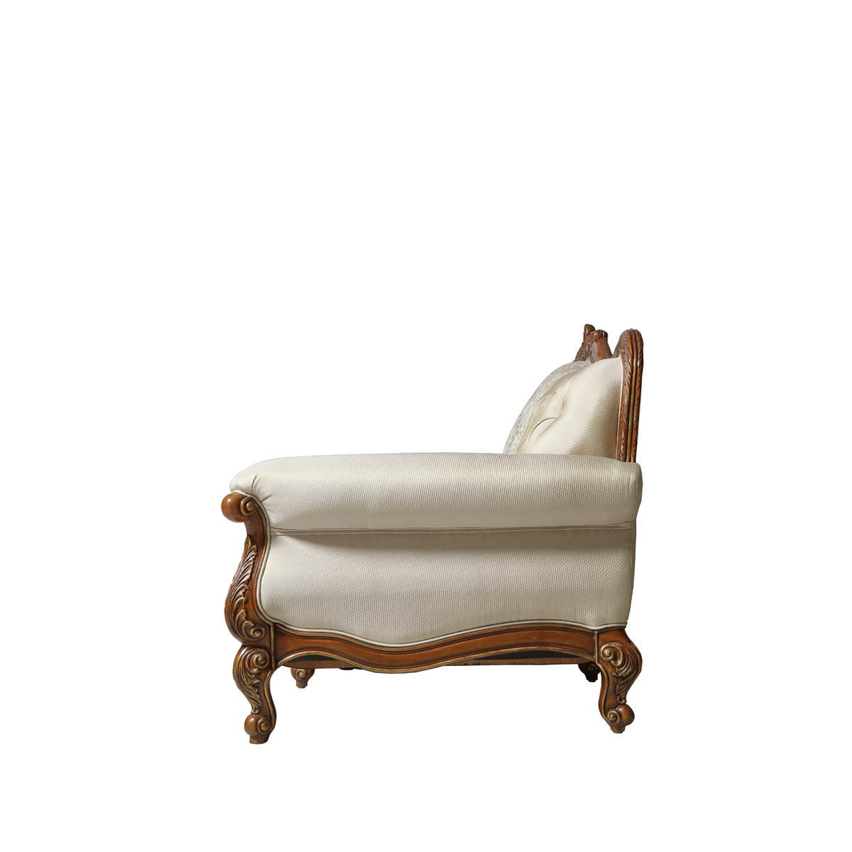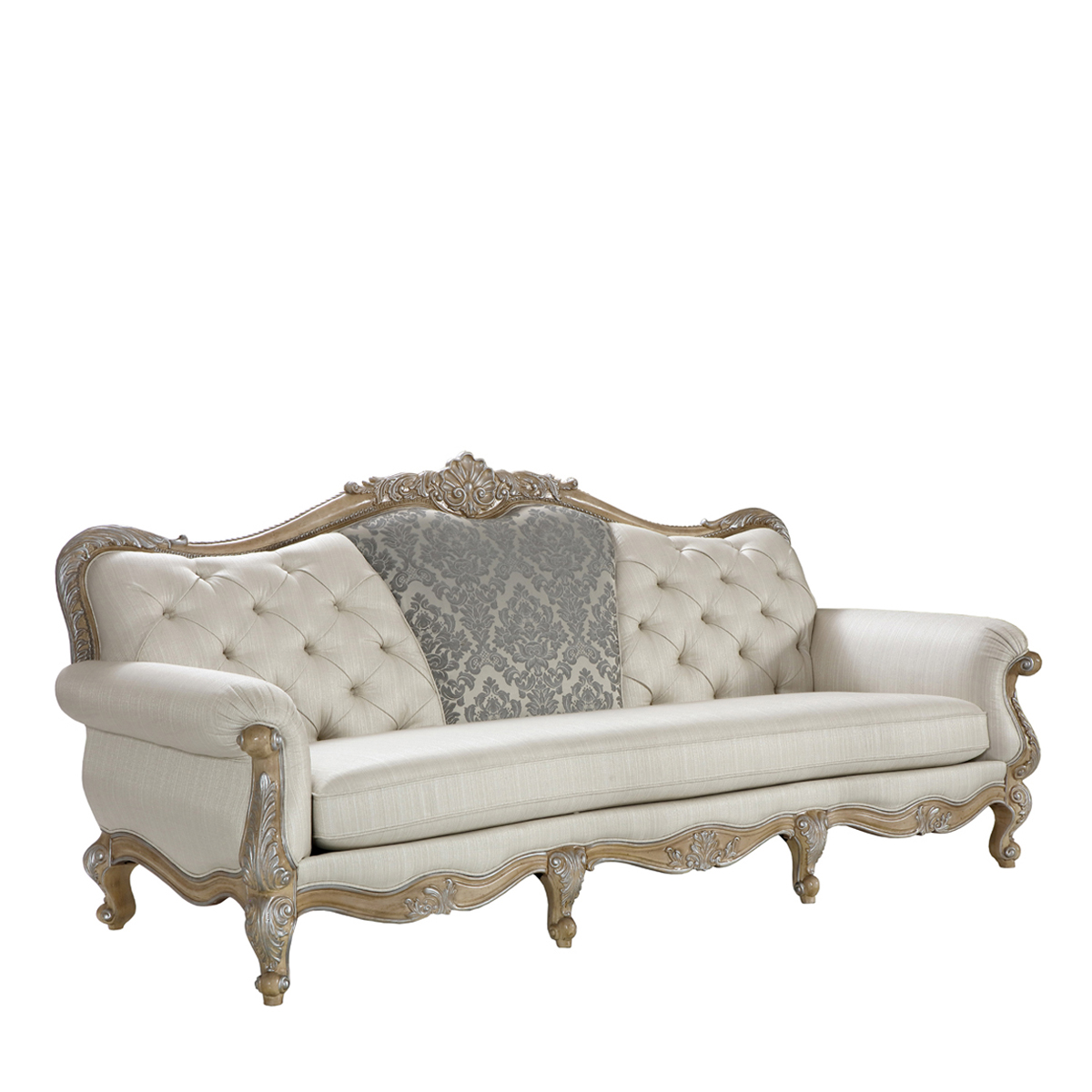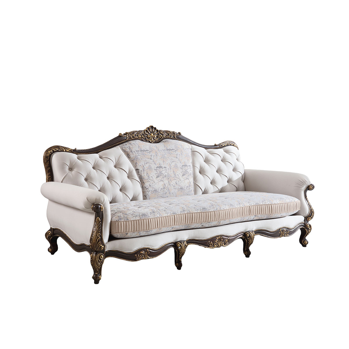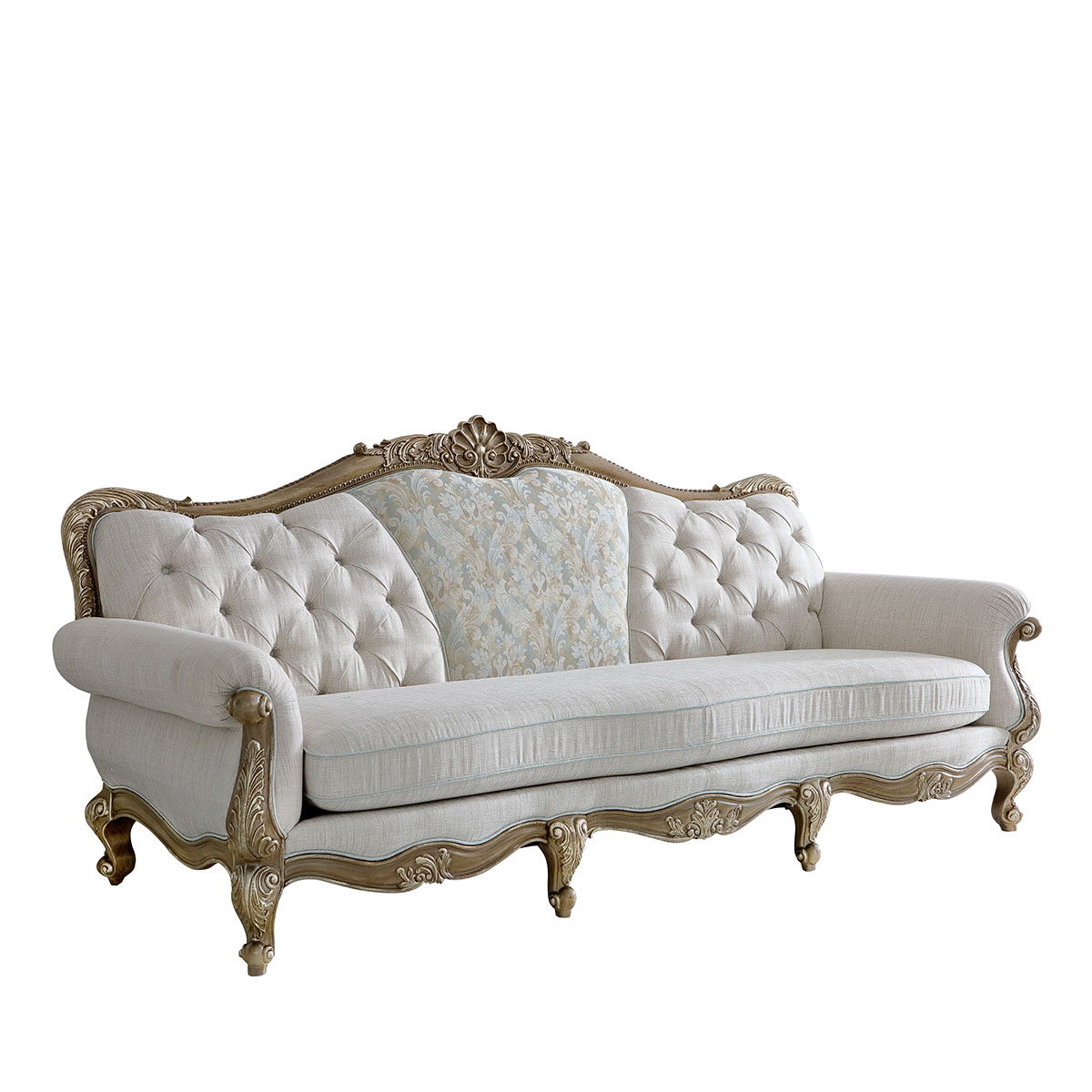 * 线条行的沙发造型犹如香颂般高低起伏的音律, 精致的实木雕刻是其中曼妙的点缀, 双重触感的软包部分带来杜乐丽花园的休闲惬意。
