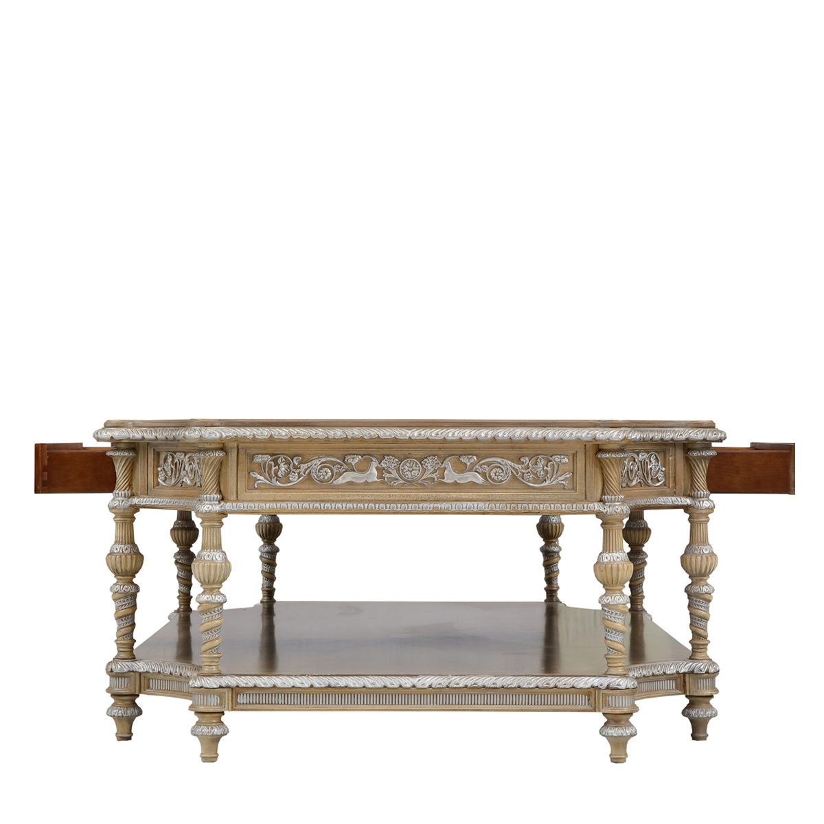 * 手工木皮拼贴工艺结实的连接技术18道以上的多步骤油漆工艺; * 四个储物抽斗,底部采用实木硬木滑轨; * 底部装有可调整脚钉;