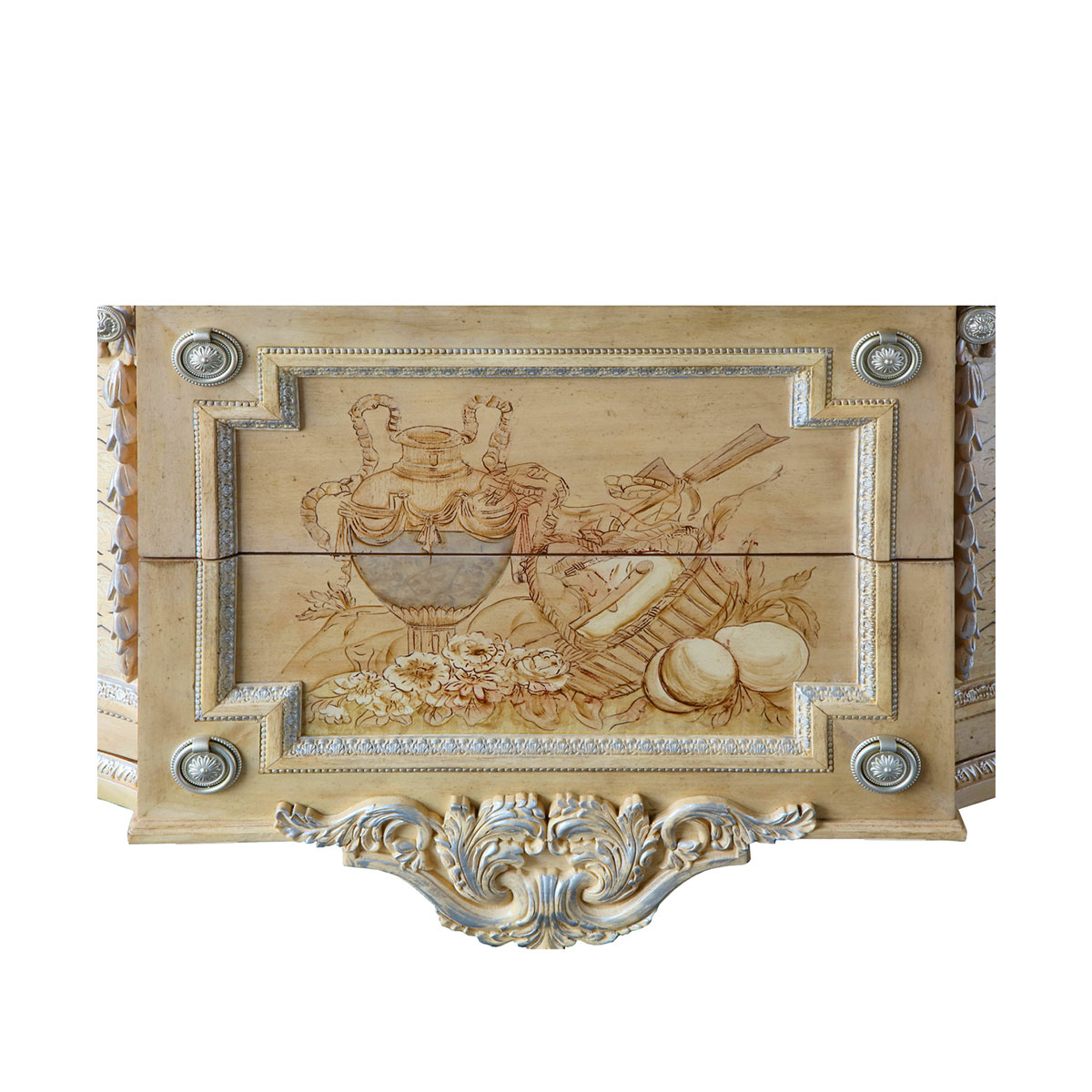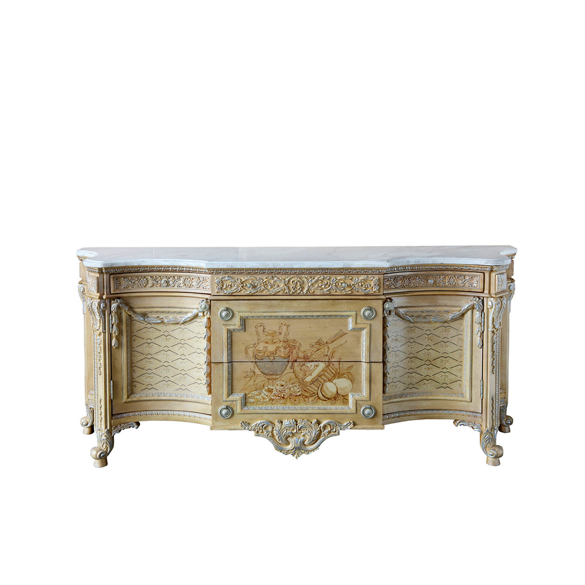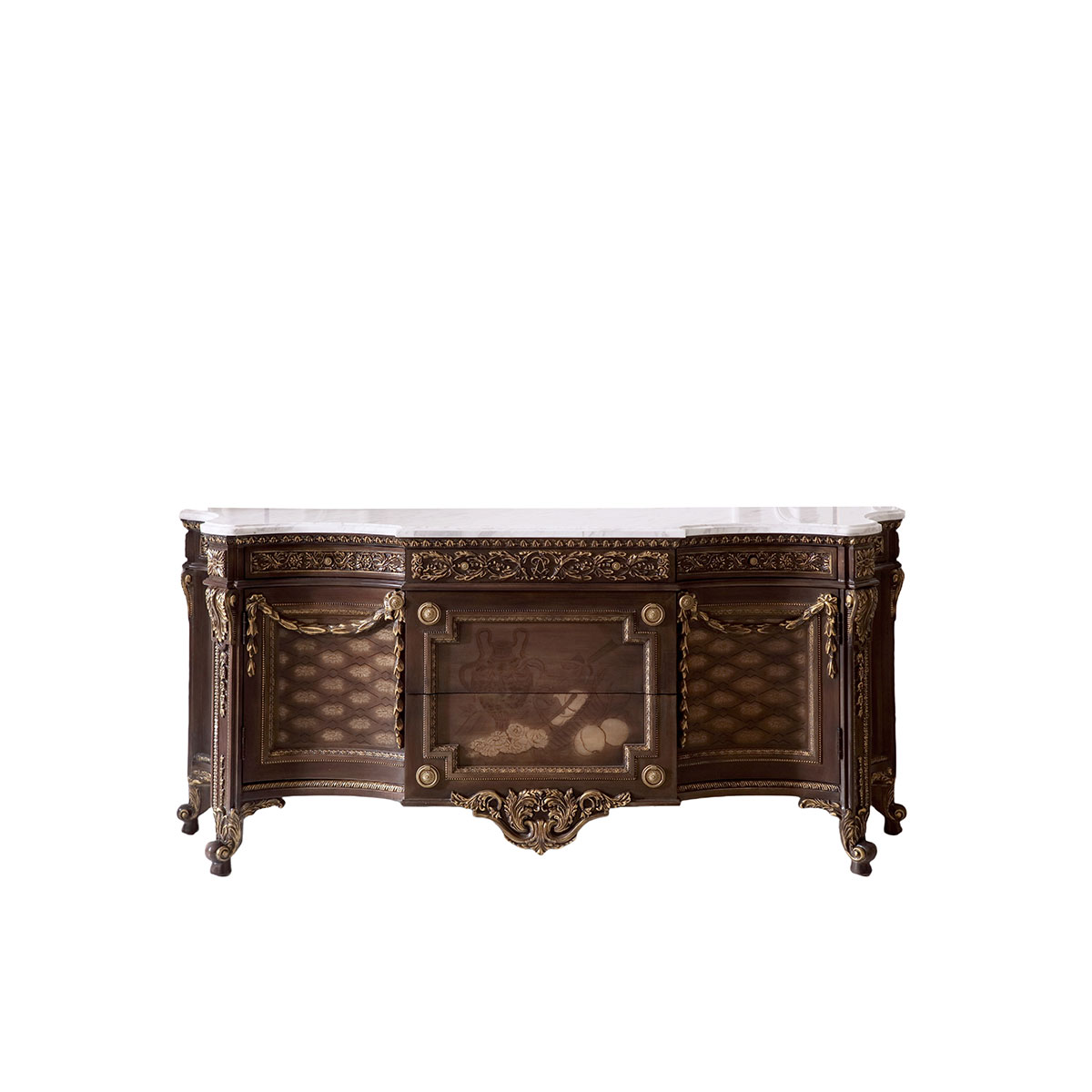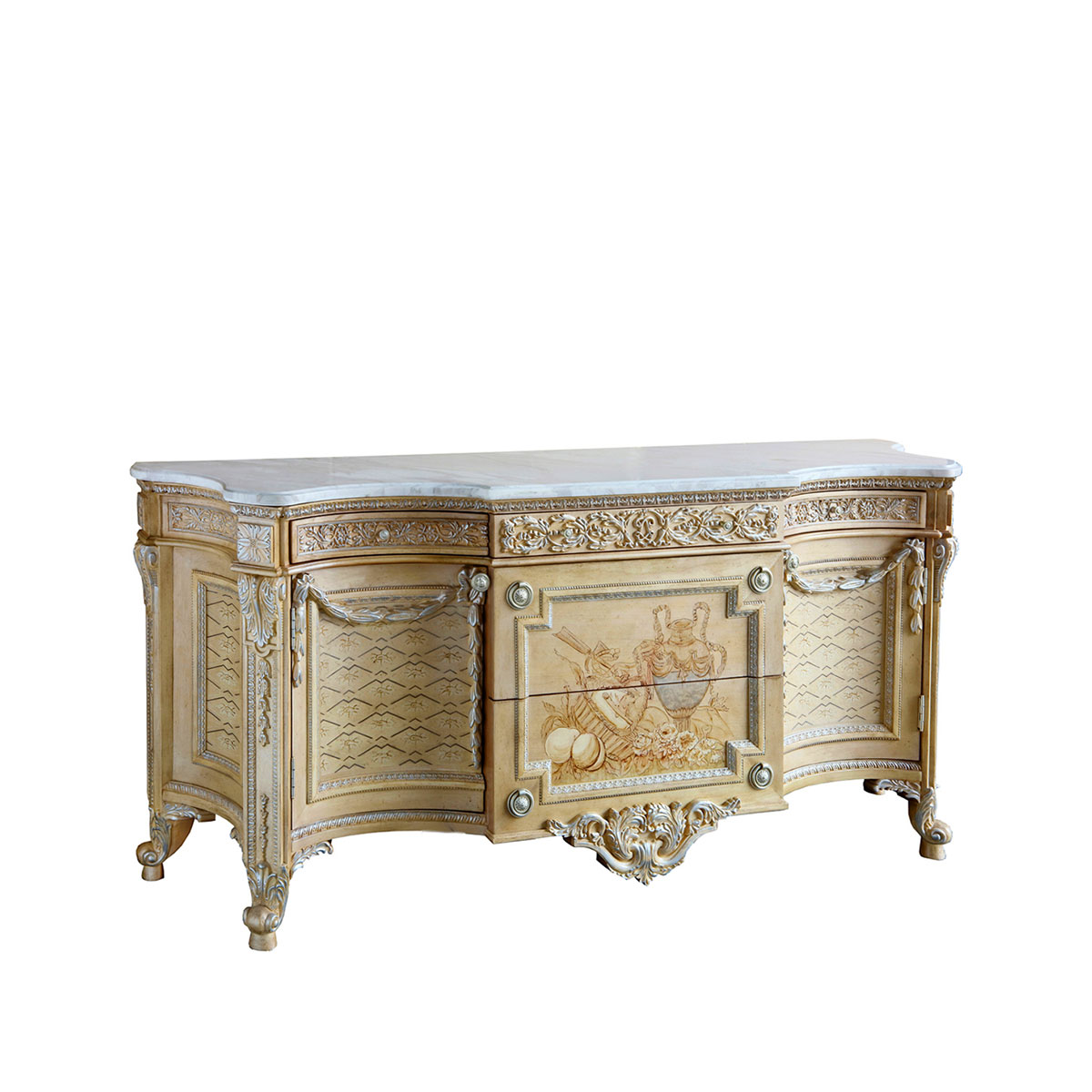 * 手工雕刻的工艺细节 * 结实的连接技术 * 光滑的花岗岩石表面 * 分别有四个储物抽斗,而在其底部采用经典硬木实木滑轨设计 * 由于雕刻和彩绘是由专业工艺师纯手工精制而成,所以每一件产品都成为独一无二的艺术品