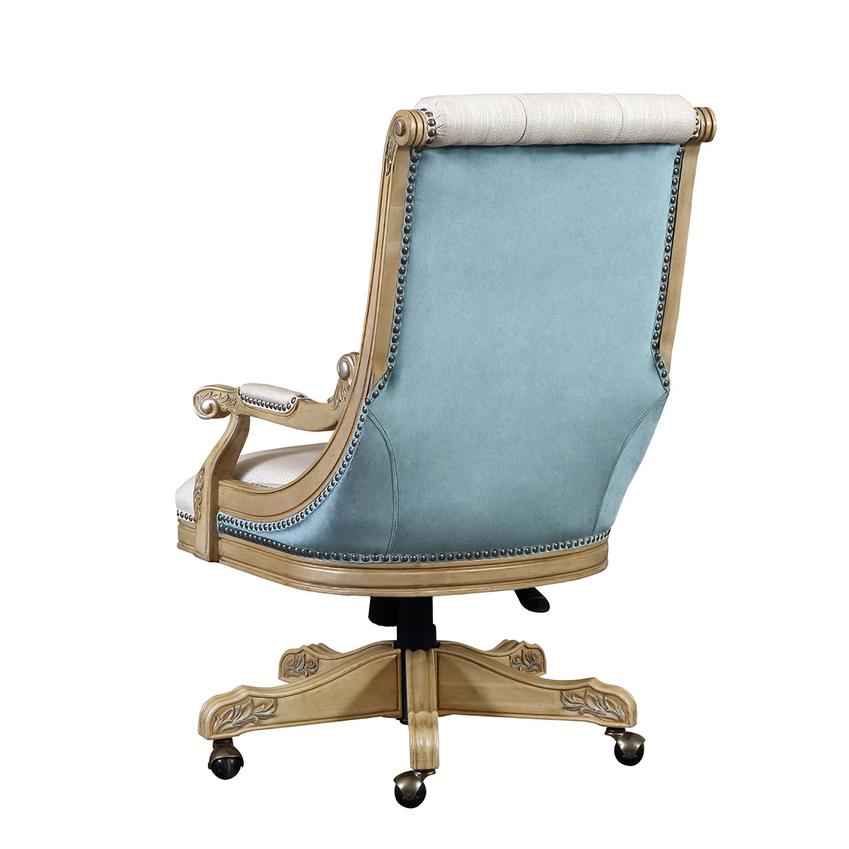 * 配有一个升降器,落地配有5个脚轮; * 椅背、座垫有多种布艺可供选择;