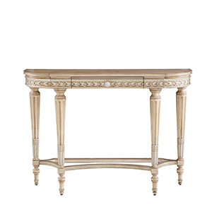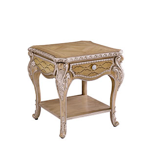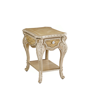 * 手工木皮拼贴工艺结实的连接技术18道以上的多步骤油漆工艺; * 免费配有一块钢化玻璃面 * 两个储物抽斗,底部采用实木硬木滑轨; * 底部为开空设计,方便存取物品; * 底部装有可调整脚钉。