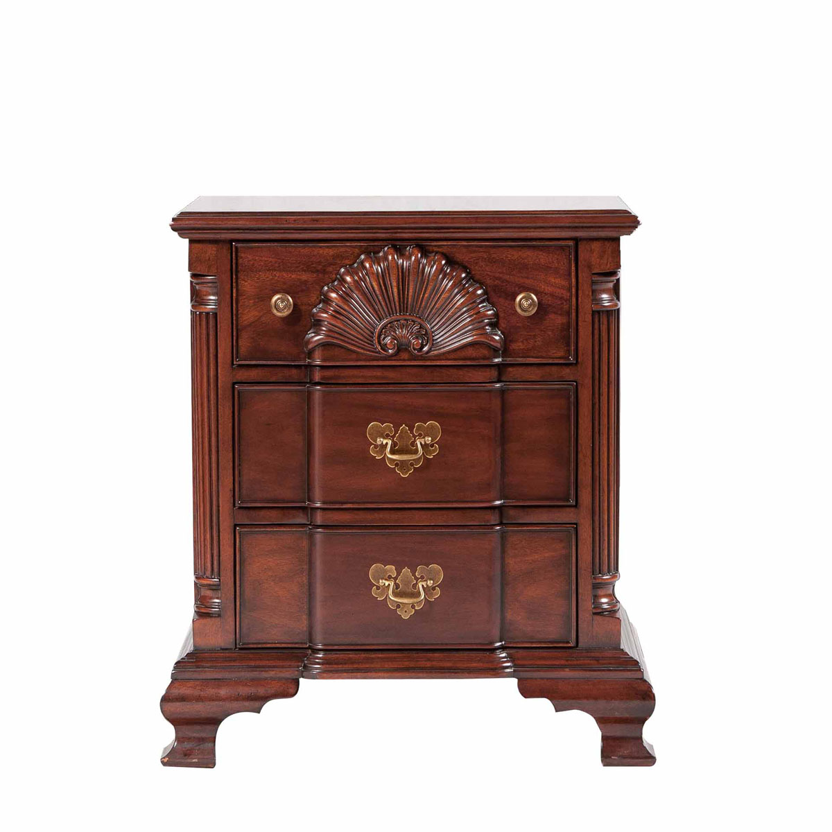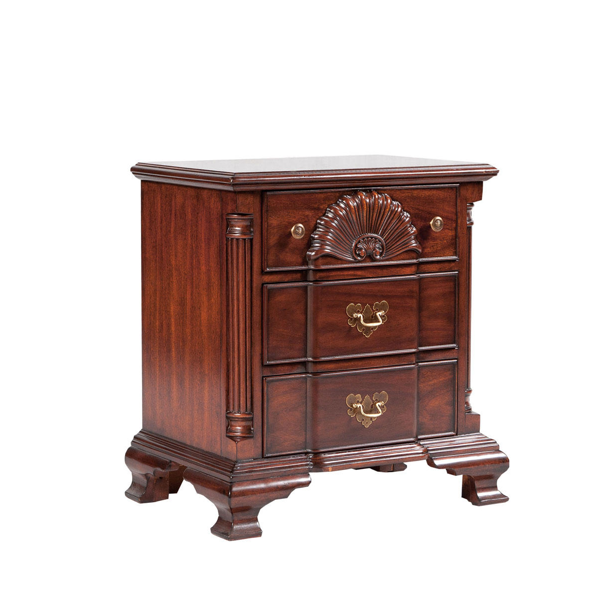 * 手工雕刻的工艺细节结实的连接技术18道以上的多步骤油漆工艺 * 三个储物抽斗,底部采用英式经典硬木实木滑轨设计; * 纯铜的拉手