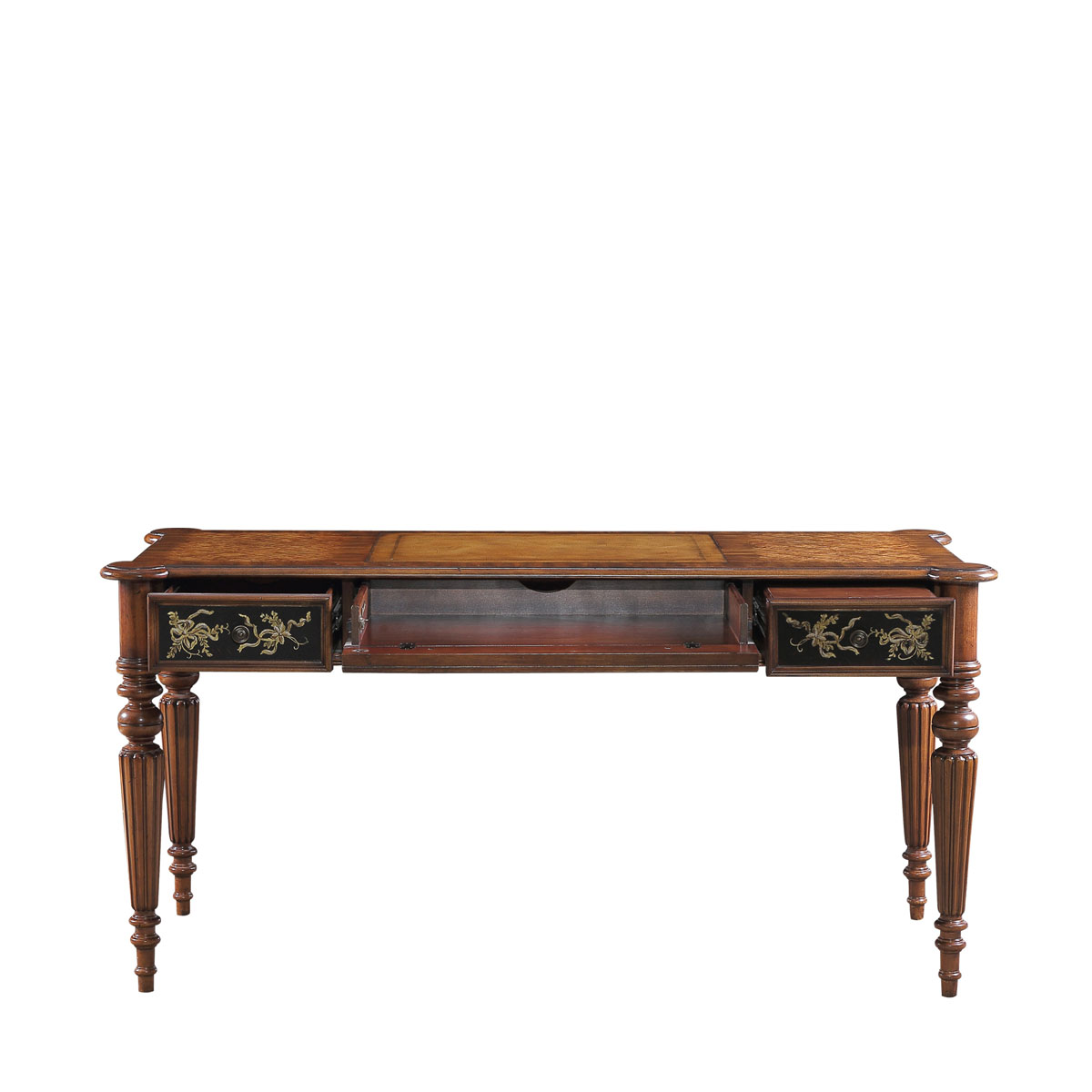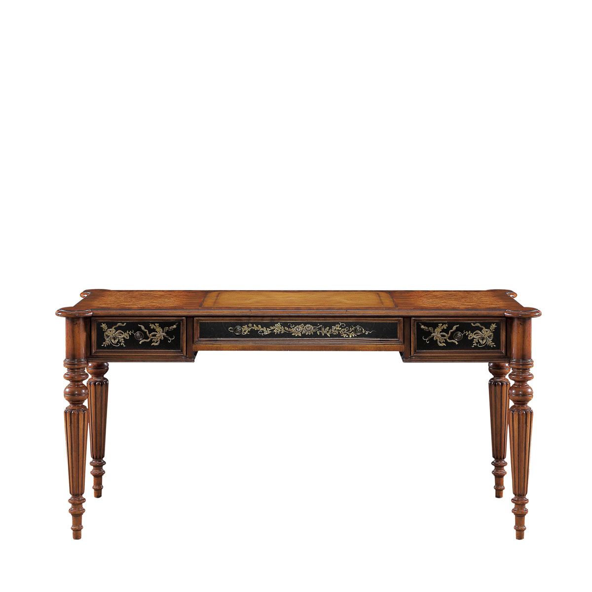 * 以18世纪英吉利——“日不落帝国”为设计主题,将东西方的多种艺术元素结合在一起。精致的木皮贴面,展现了高档木材的天然纹理,带出独特的立体感;黑底金漆的山水手绘,颇具东方情调。配上Sheraton(谢拉顿风格)的锥形凹槽柱和层板设计,是经典系列英吉利经典英式长方咖啡桌的特色。
