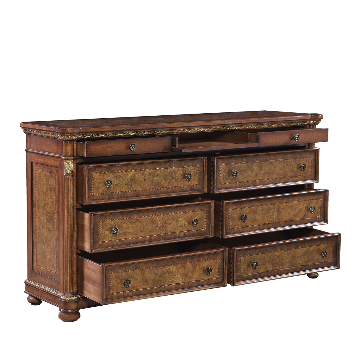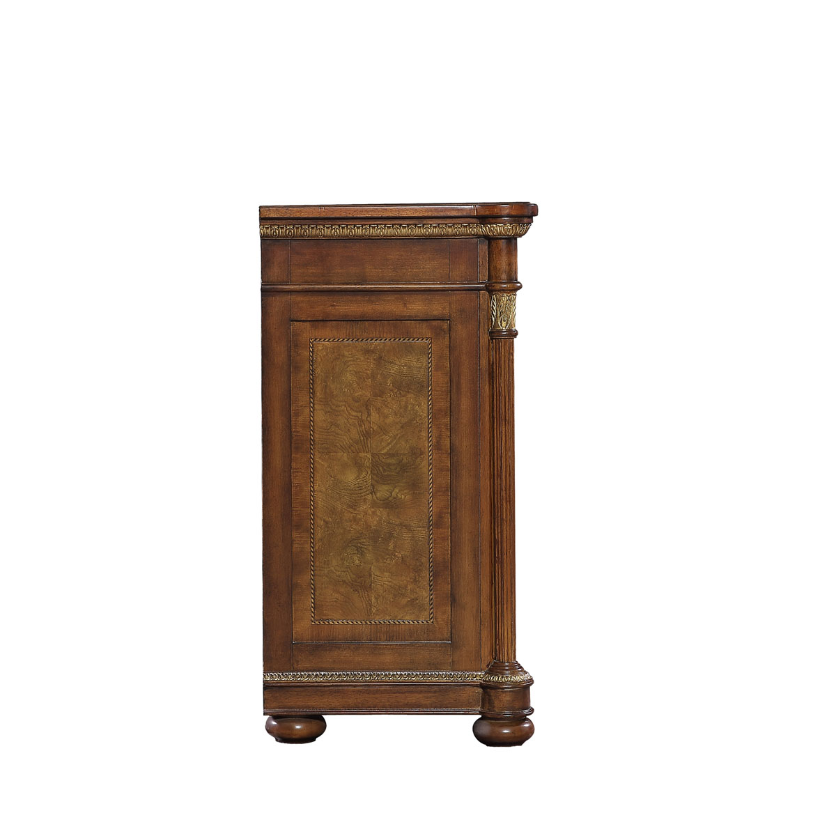 * 九个抽斗 * 八个为储物抽斗,底部采用硬木实木滑轨; * 中间一个抽斗为翻斗,斗面可翻开,有线孔; * 脚部装有可调整脚钉;