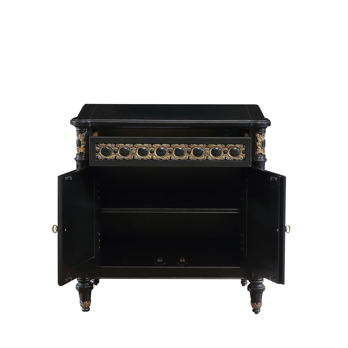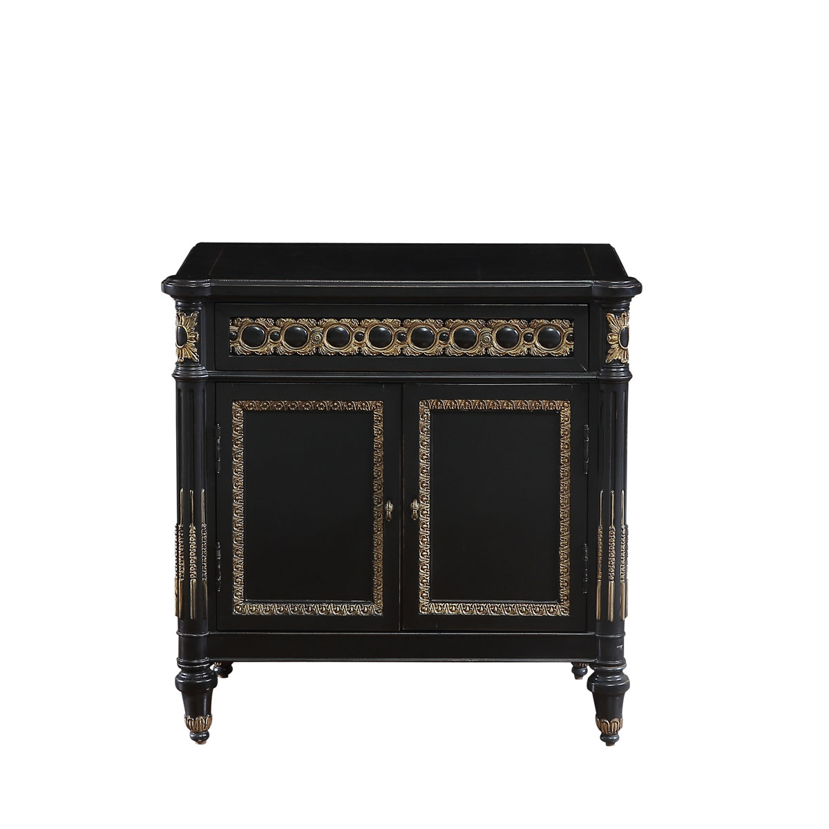 * 手工雕刻的工艺细节; * 结实的连接技术 * 一个储物抽斗,而在其底部采用英式经典硬木实木滑轨设计; *门内一块活动层板 * 仿金箔工艺配上十八道油漆工艺让每一件悟空体育官网都是工艺品;