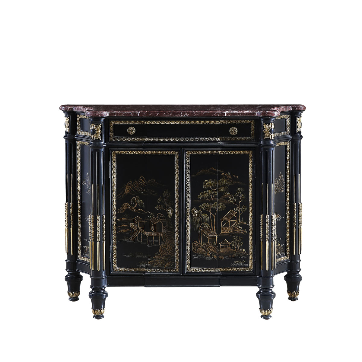 * 手工雕刻的工艺细节 * 结实的连接技术 * 光滑的花岗岩石表面 * 前方有一个抽斗,其底部采用经典硬木实木滑轨设计,门内有一块可调整层板 * 由于雕刻和彩绘是由专业工艺师纯手工精制而成,所以每一件产品都成为独一无二的艺术品