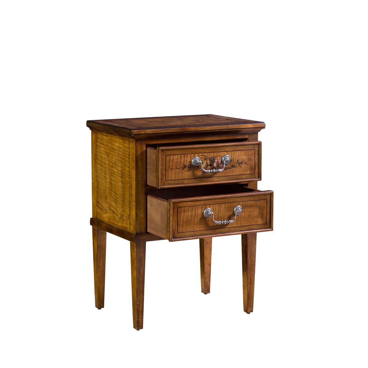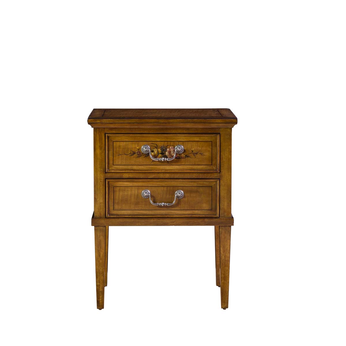 * 花纹图案都是经过专业工艺师精心绘制而成, 所以每件产品都是独一无二的; * 两个储物抽斗,底部采用硬木实木滑轨; * 底部装有可调整脚钉;