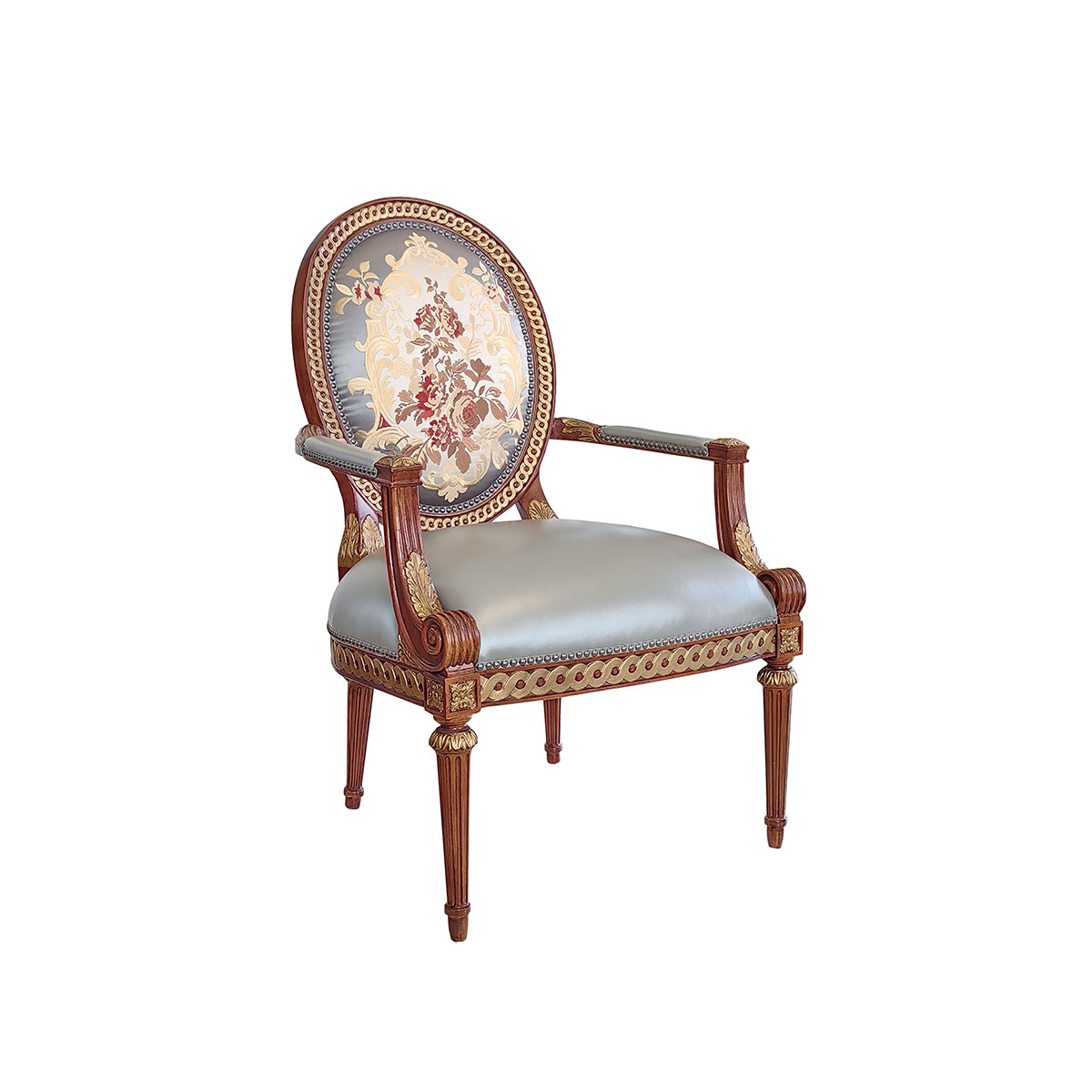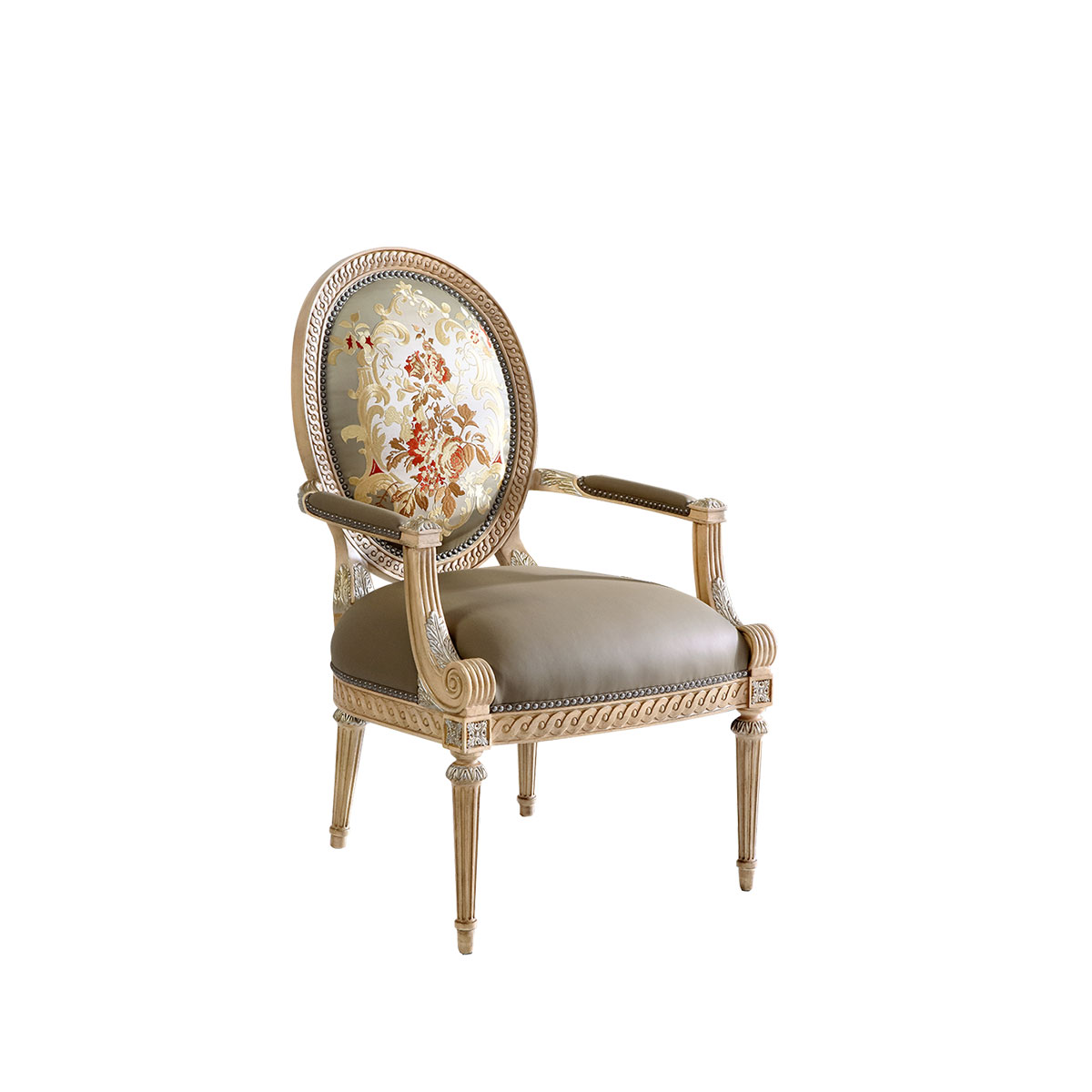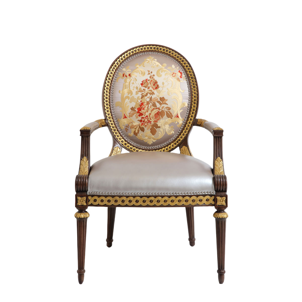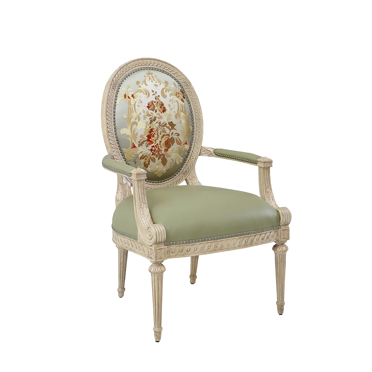 * 精细的手工雕刻配上仿金箔工艺结合十八道油漆工艺 * 坐垫和靠背包有丰厚的填充物; * 可拆装的软包座垫, * 提供多种面料可供选择