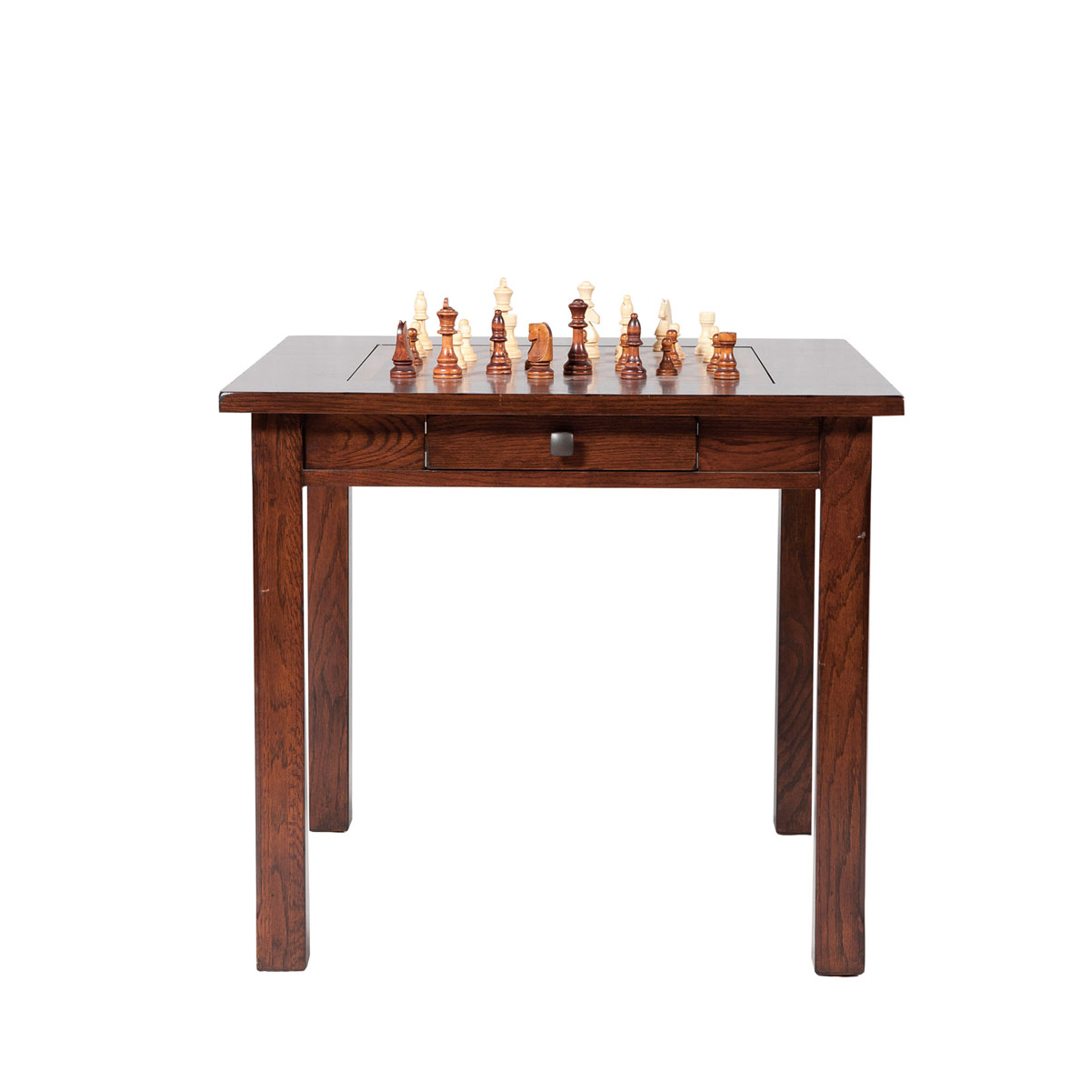 * 一个储物抽斗,底为采用硬木实木滑轨设计 * 脚为拆装结构 * 中间棋盘面板可两面用