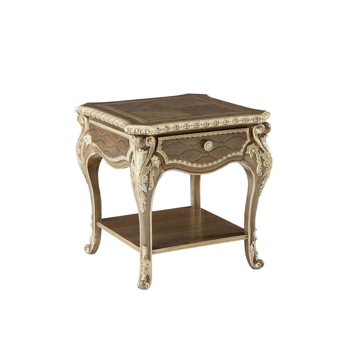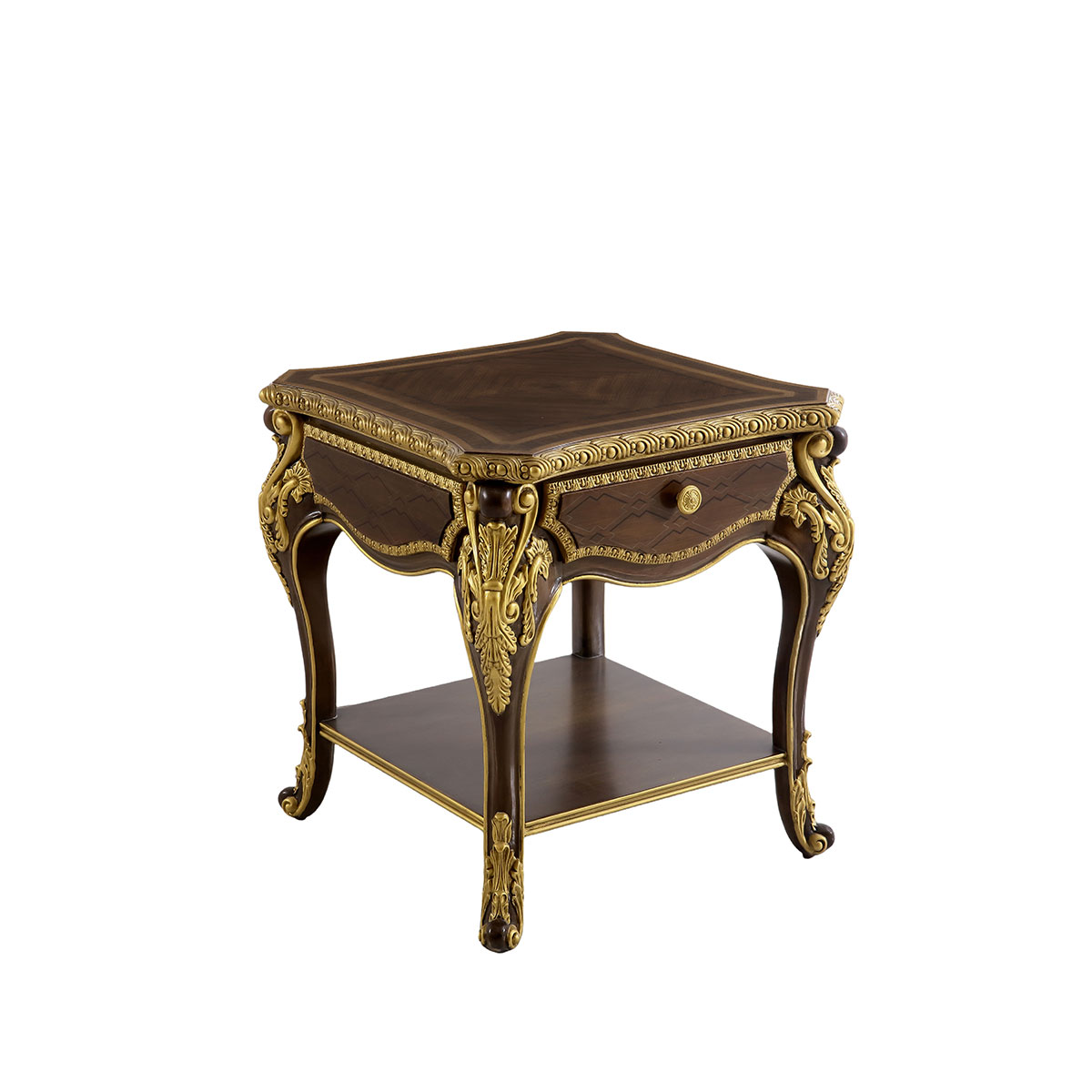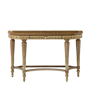 结合Louis XV (路易十五)时期洛可可风格雕刻弯腿与Louis XVI (路易十六)时期新古典风格实木簿片鑲嵌图腾,把法国凡尔赛宫中的经典呈現,表达法国宫廷的华丽与传承。