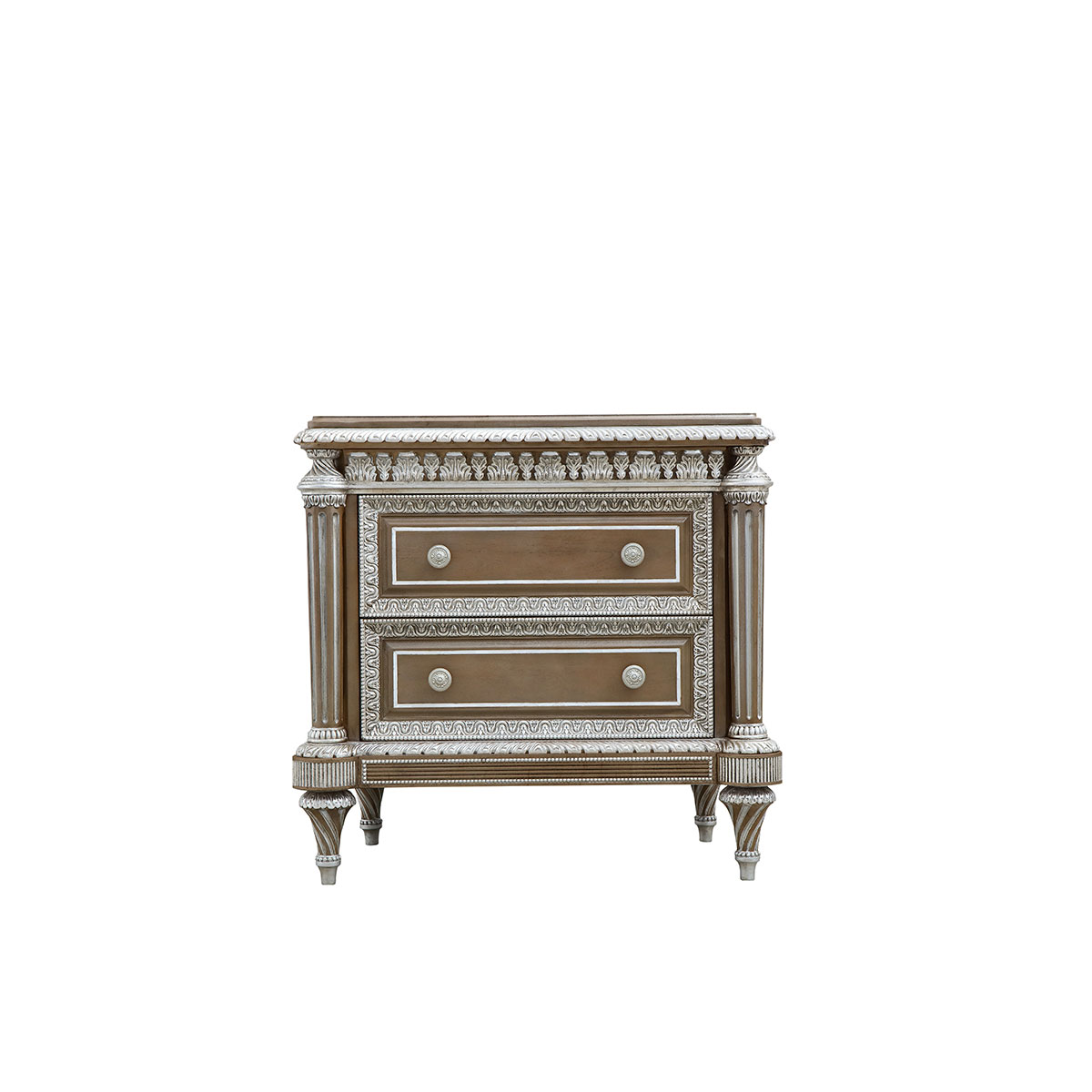* 二个储物抽斗,底部采用经典的硬木实木滑轨; * 脚底部装有可调脚钉;