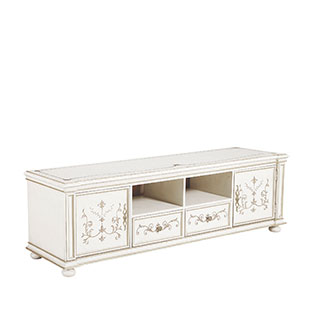 * 中间两个储物抽斗配有CD/DVD隔板,可CD/DVD更好的存放,其底部采用经典硬木实木滑轨设计; * 两扇门内各有一块可调层板;上部为开空设计,可在内放播放器等电子器材; * 脚底部装有可调脚钉;