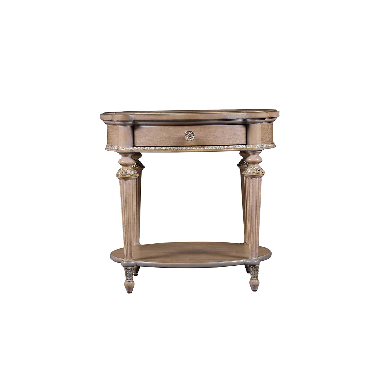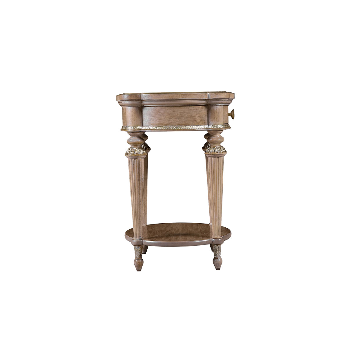 * 一个抽斗,底部装有硬木实木滑轨; * 底部的层板可放置家庭装用品; * 底部装有可调整脚钉;