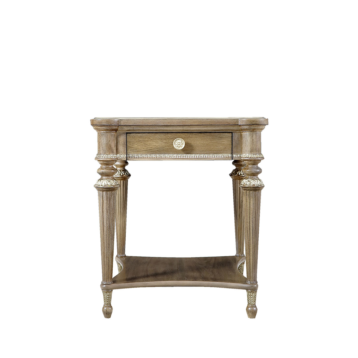 * 1个抽斗,底部装有硬木实木滑轨。 * 底部的层板可放置家庭装用品; * 底部装有可调整脚钉。
