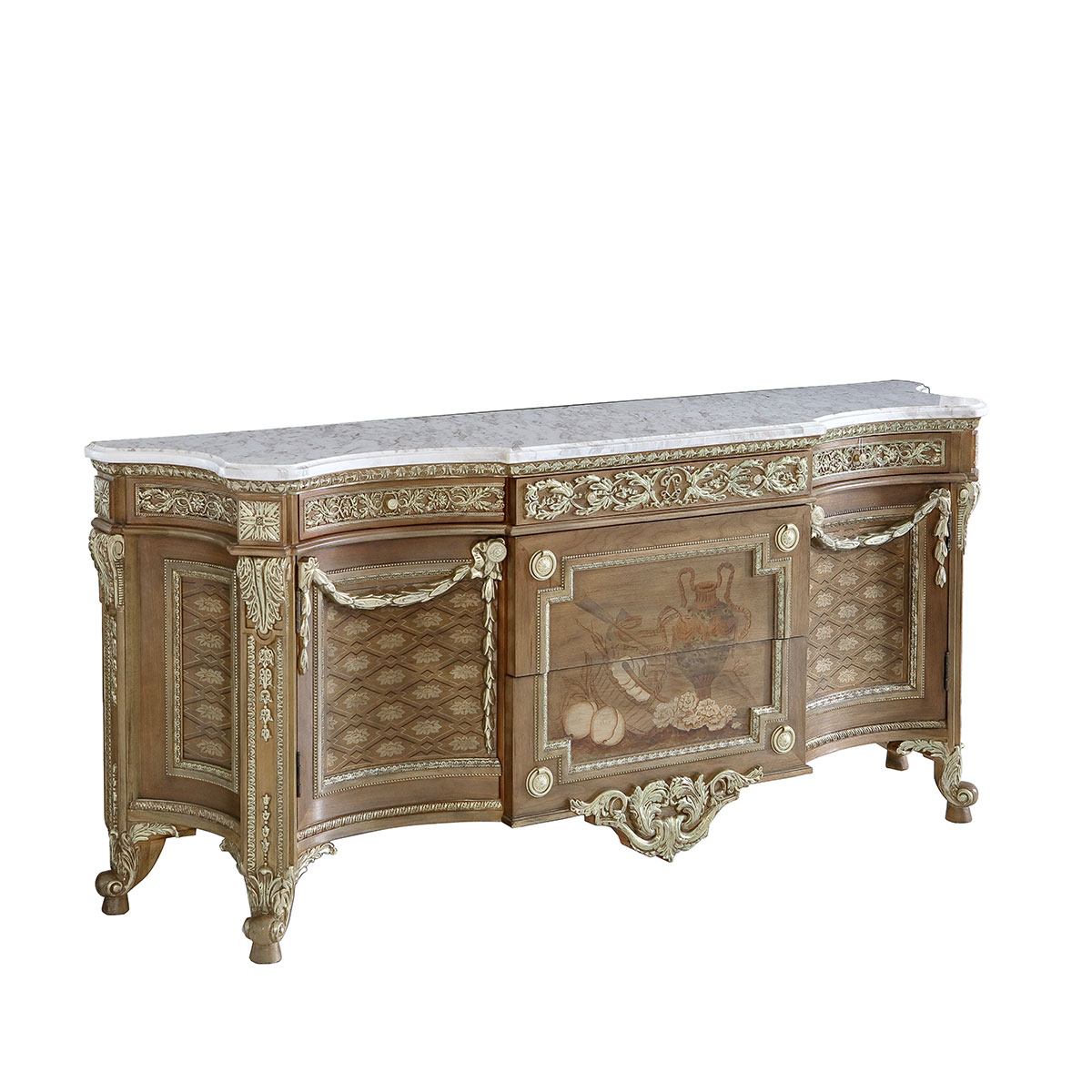 以法国著名工匠 Jean Henri Riesener 为 Louis VXI (路易十六)设计的新古典风格古董櫃为灵感,四平八稳的方形设计配以细腻的雕刻与实木簿片鑲嵌,呈現出法國宮廷的浪漫。