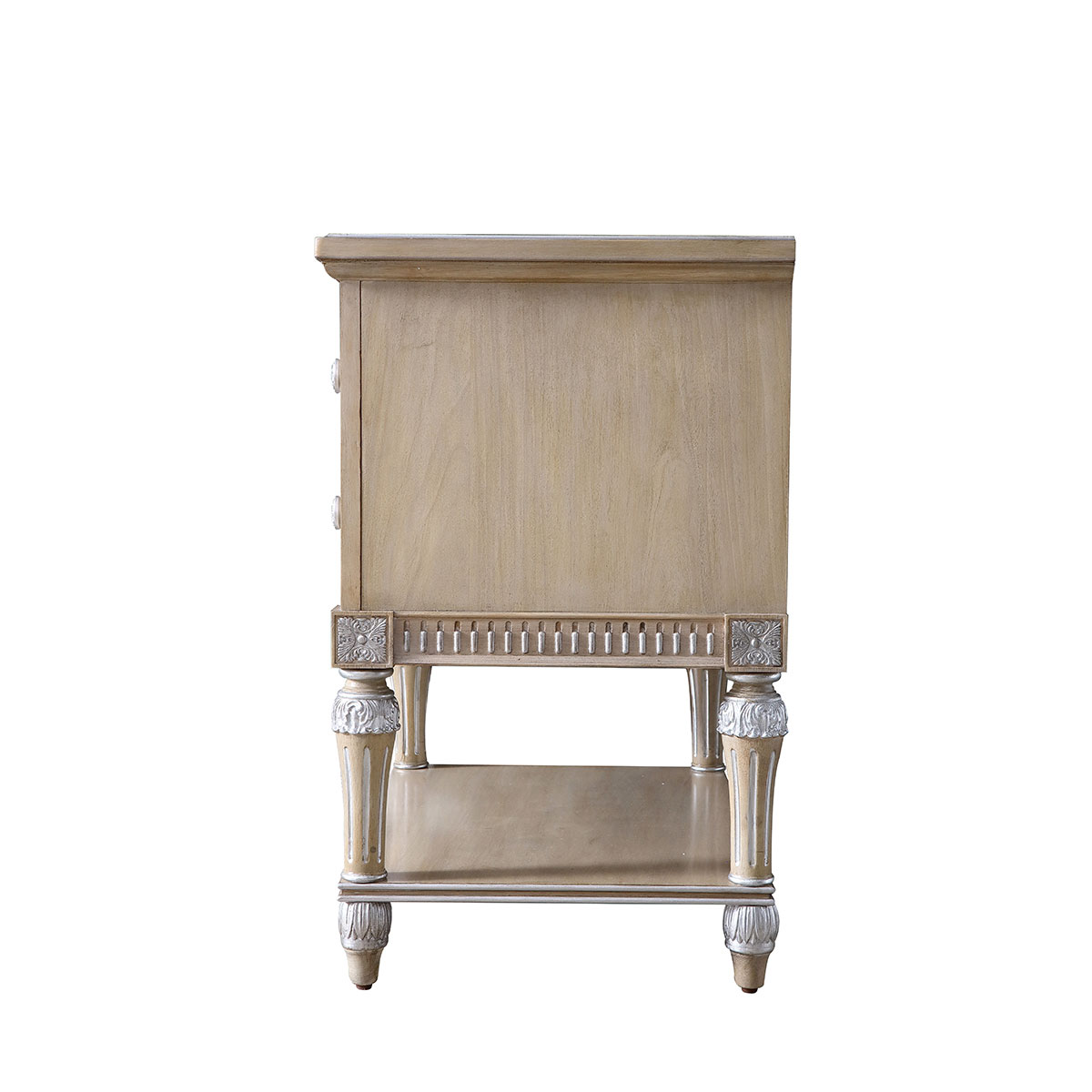 * 二个抽斗,底部装有硬木实木滑轨; * 可拆装设计; * 底部的层板可放置家庭装饰品; * 底部装有可调整脚钉;
