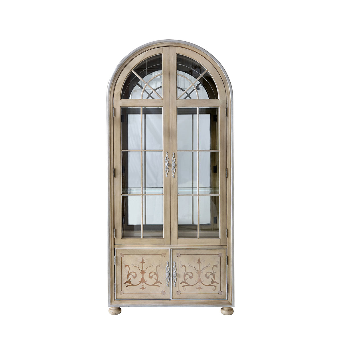 * 门内有三块玻璃层板,背板处装有背镜,使柜身内部的光线更通亮; * 下门内有一块可调木制层板;