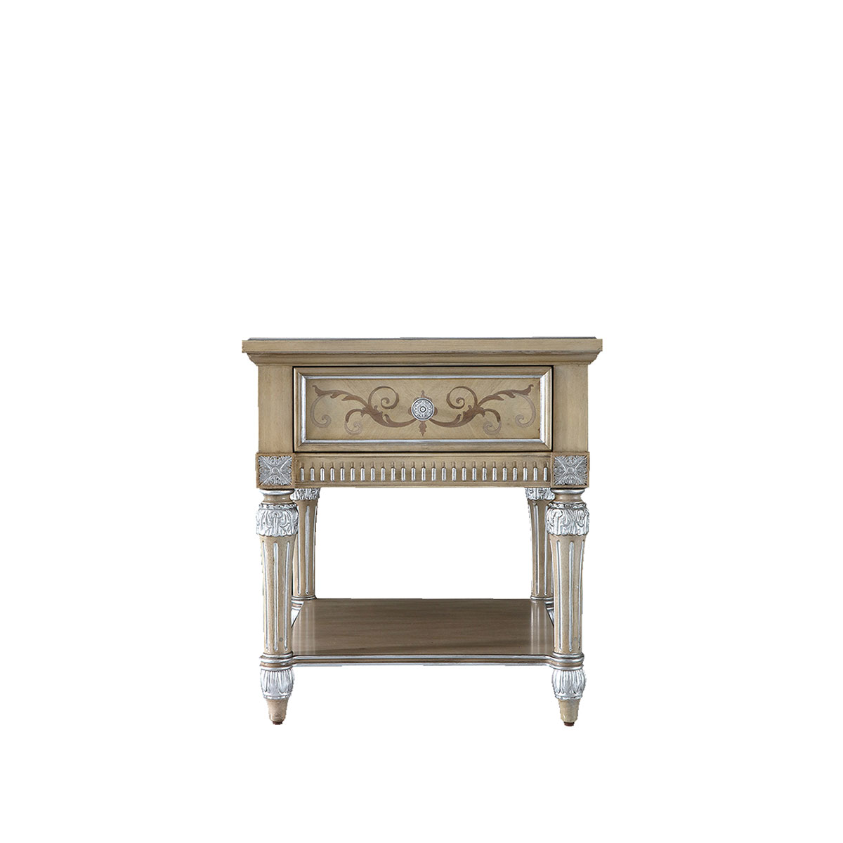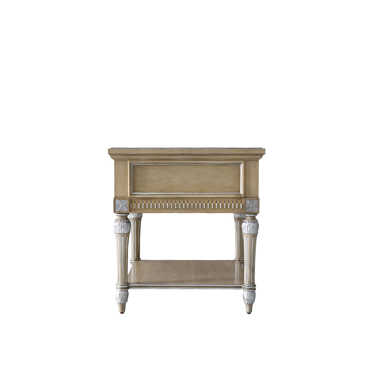 * 手工雕刻的工艺细节结实的连接技术18道以上的多步骤油漆工艺; * 一个储物抽斗,其底部采用经典的硬木实木滑轨 * 底部的层板可放置家庭装饰品; * 脚可拆装 * 底部装有四个调整脚钉;