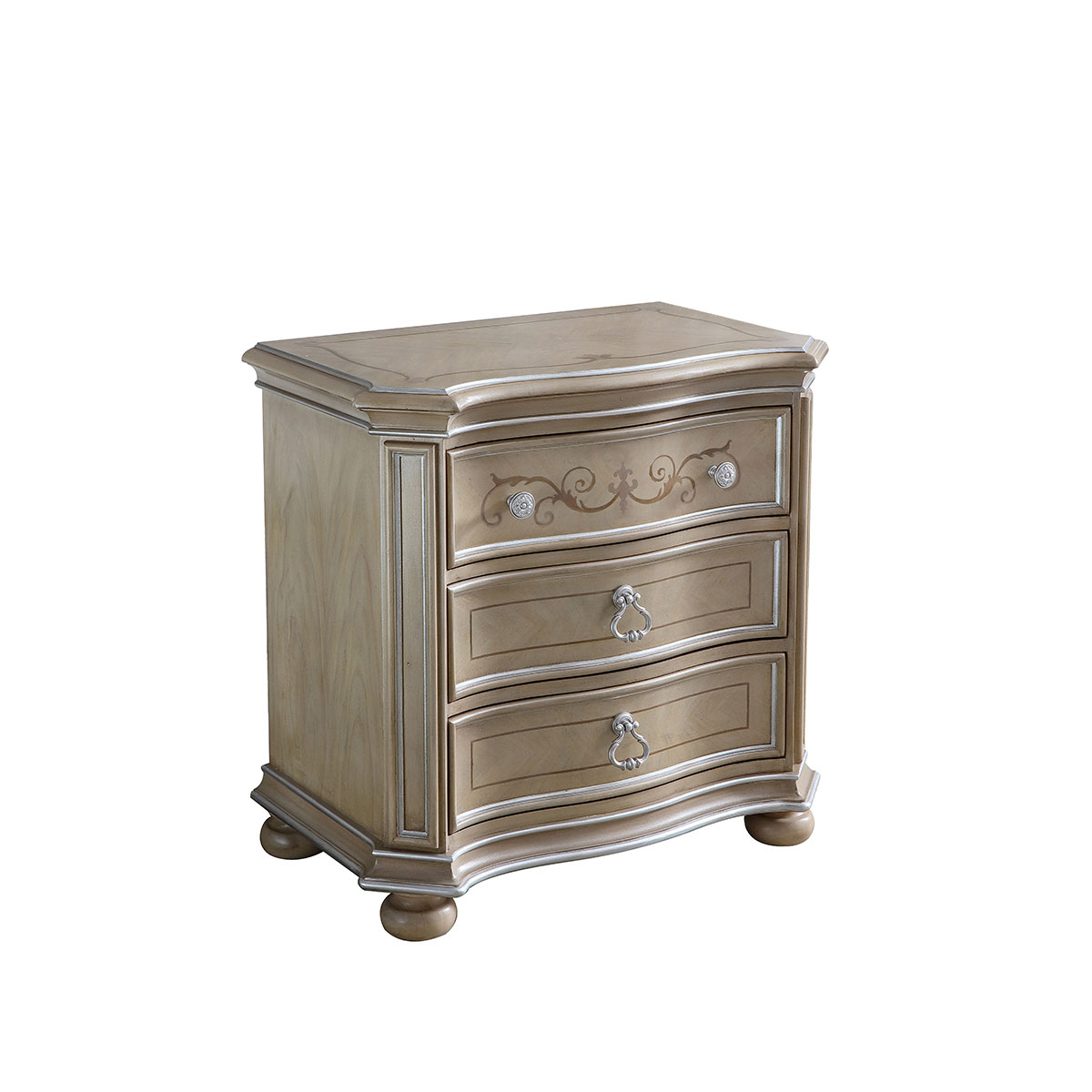 * 三个储物抽斗,底部采用经典的硬木实木滑轨; * 斗面采用激光切割木皮工艺拼接而成,是现代与传统的工艺结晶;