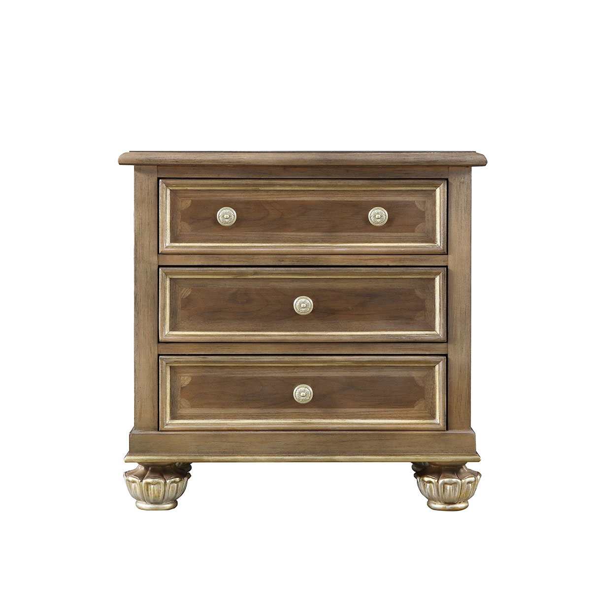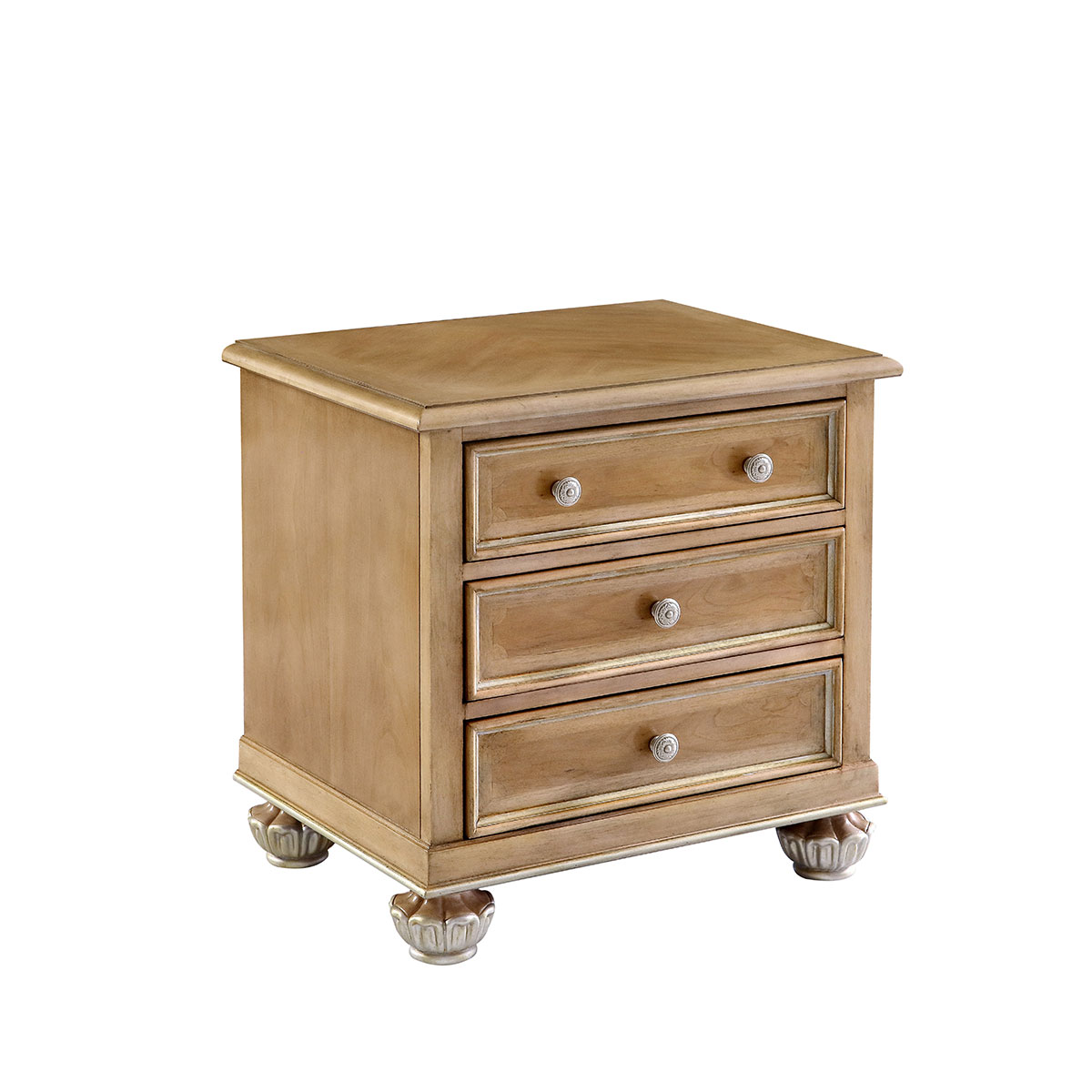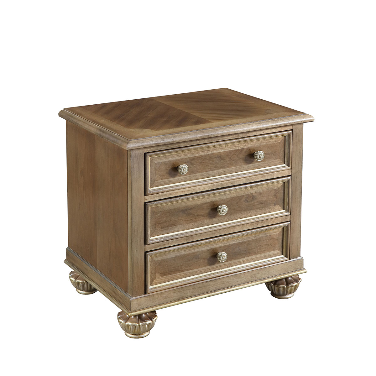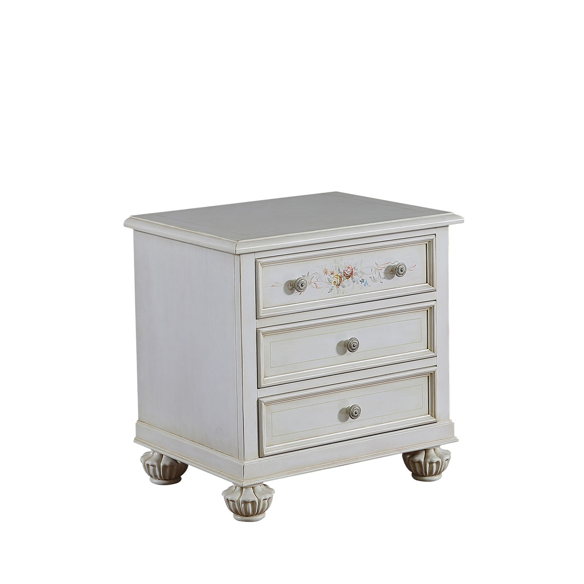* 手工拼花藤蔓效果,用多种上等木皮拼制而成 * 三个储物斗,底部采用经典的硬木实木滑轨; * 脚脚底部装有可调脚钉;