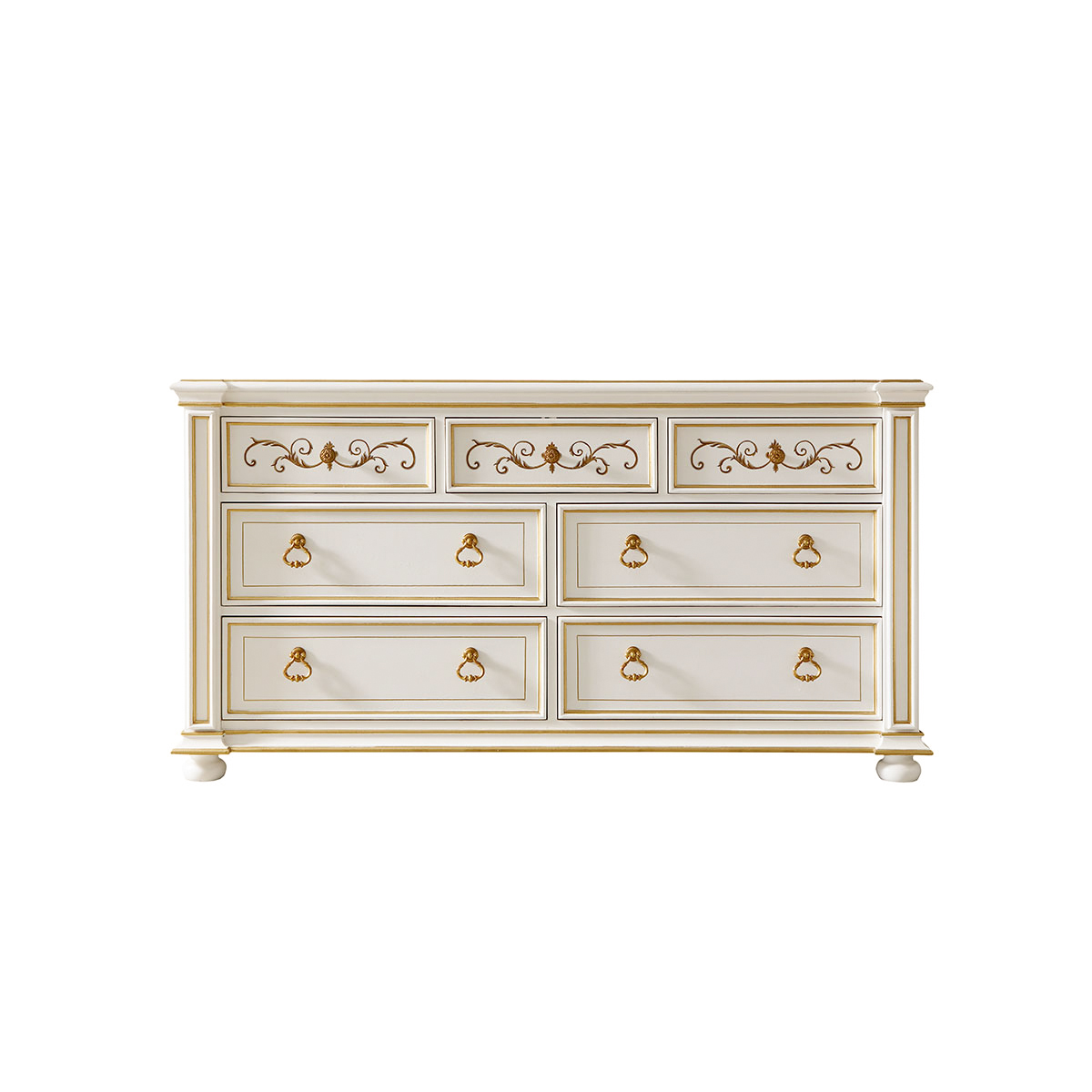 * 七个储物抽斗,其底部采用经典的硬木实木滑轨; * 脚底部装有可调脚钉;