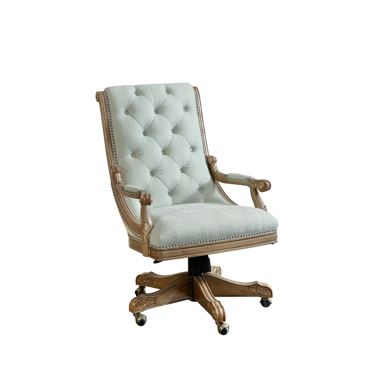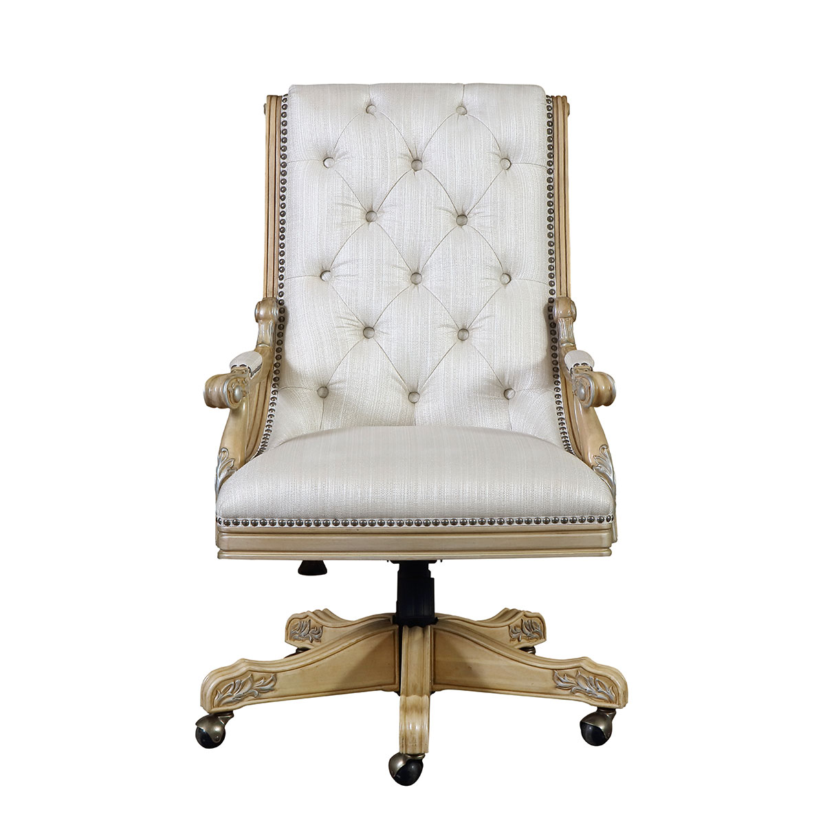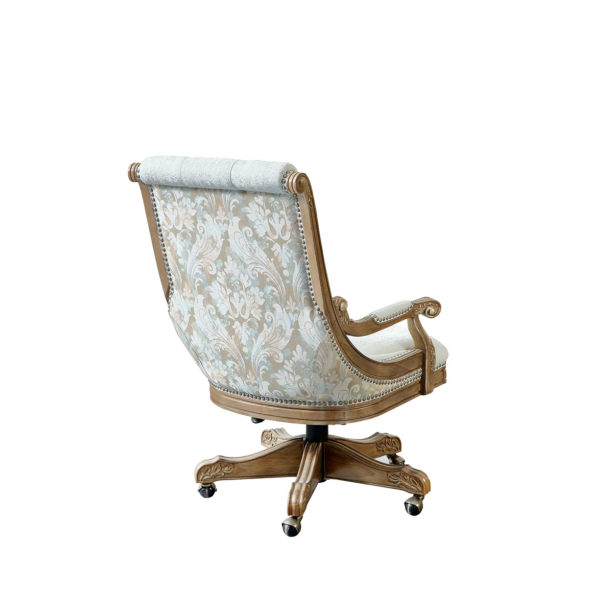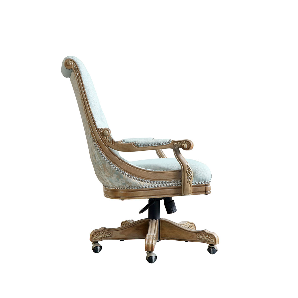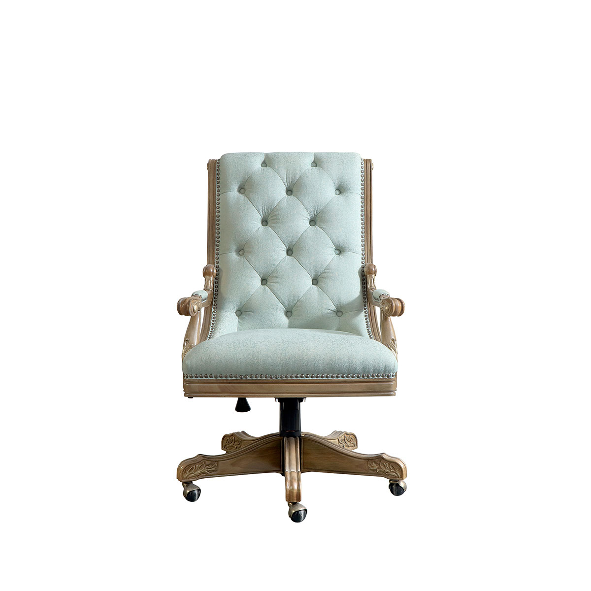 * 配有一个升降器,落地配有5个脚轮; * 椅背、座垫有多种布艺可供选择;