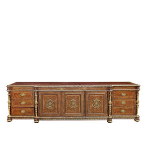 * 带槽纹的锥形腿象征权力的坚不可摧,英国皇室悟空体育官网御用的桃花心木饰以珍稀木皮彰显传世价值,绮丽华美的花朵雕刻与拼花图案,则寄托了王室贵族对古典艺术的钟爱。