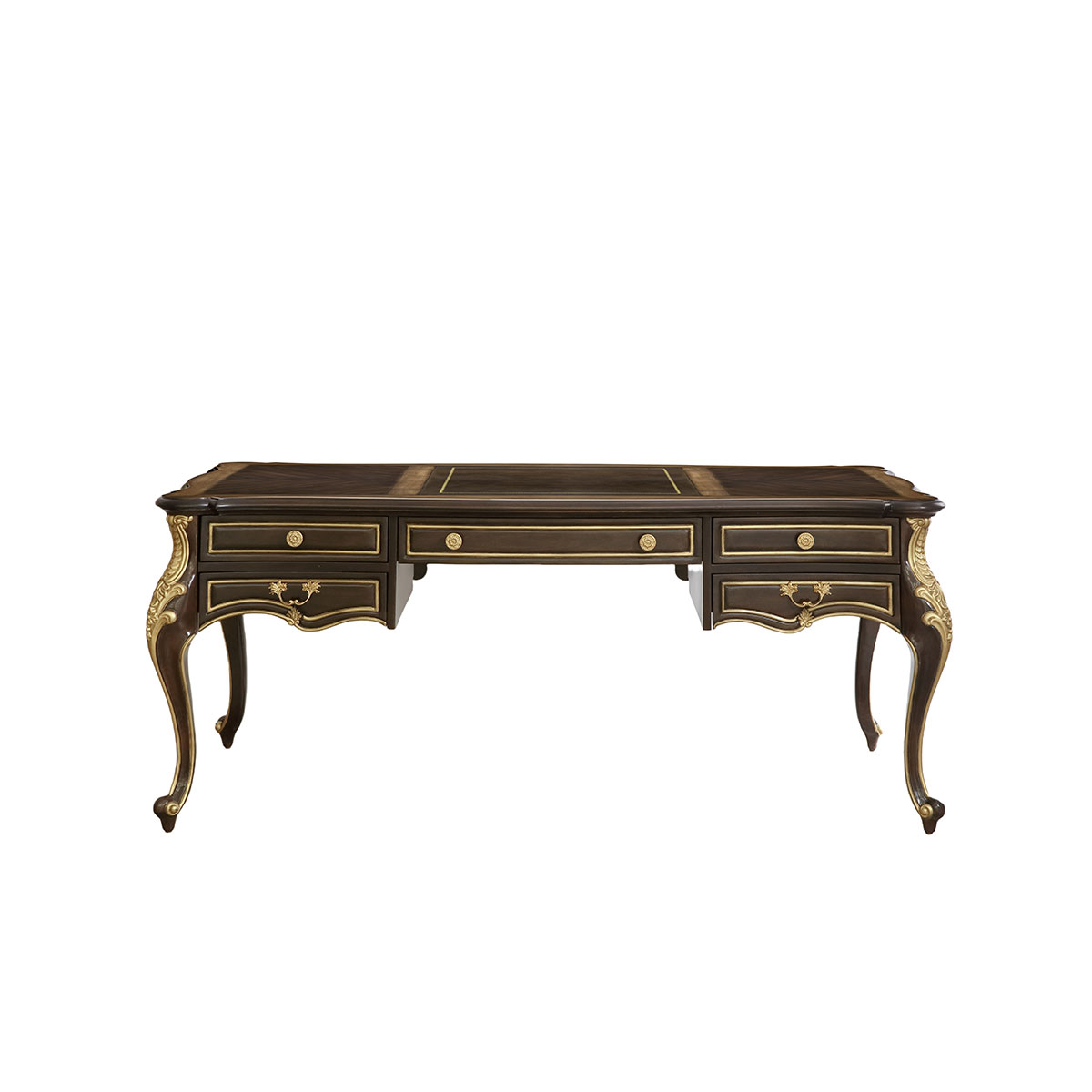 * 面板写字区域的皮革设计让你的书写更流畅; * 共五个大小不同的储物抽斗; * 中斗为键盘斗,右边为储物抽斗也可做鼠标斗;抽斗内侧有电线孔,抽斗两边装有两条三节消声铁滑轨,滑顺耐用; * 脚底部装有可调脚钉;